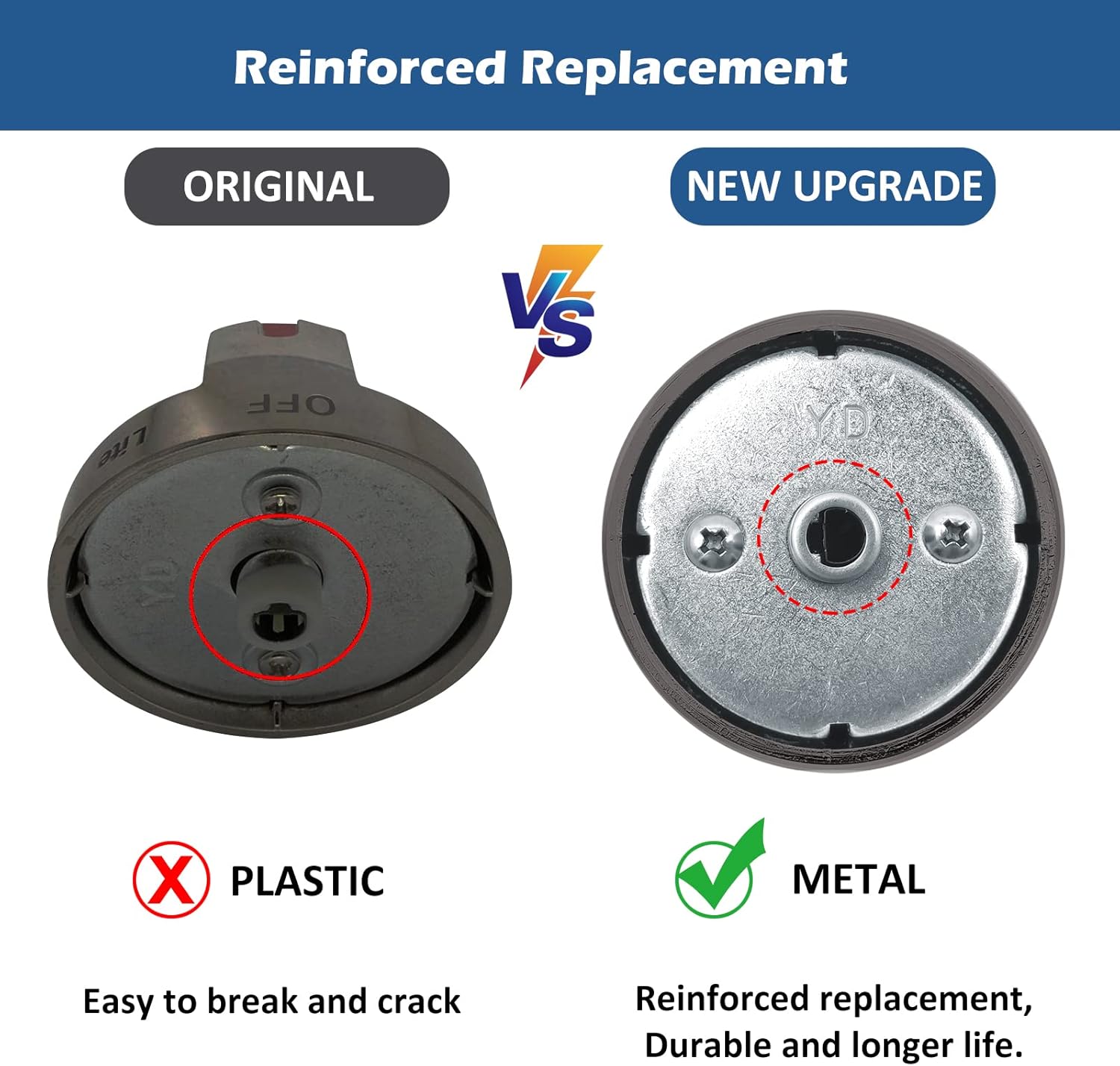 Saves Your Money-Exceed OEM quality at half the price;The original samsung knob interior is plastic and cracks easily;The replacement knobs interior are metal; These replacement knobs are upgraded with the reinforced collar they can take heavy duty and won’t be cracked