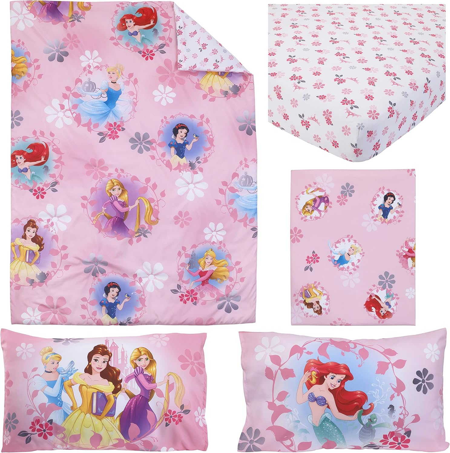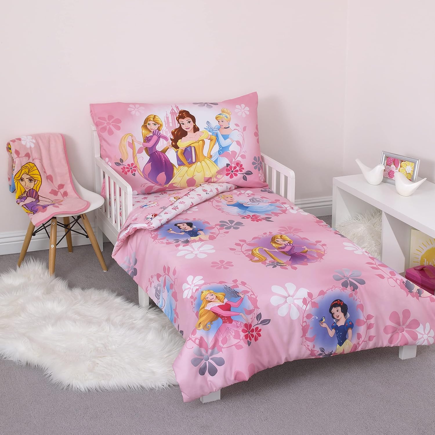 Disney Pretty Princess Toddler Bed, 4 Piece Set, Pink