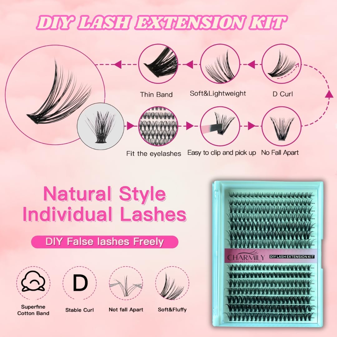 【Easy DIY Lash Extensions at Home】 Skip the salon! Charmily’s DIY Lash Clustersll Kit lets you create stunning, natural-looking lash extensions easily at home — saving you time and money.