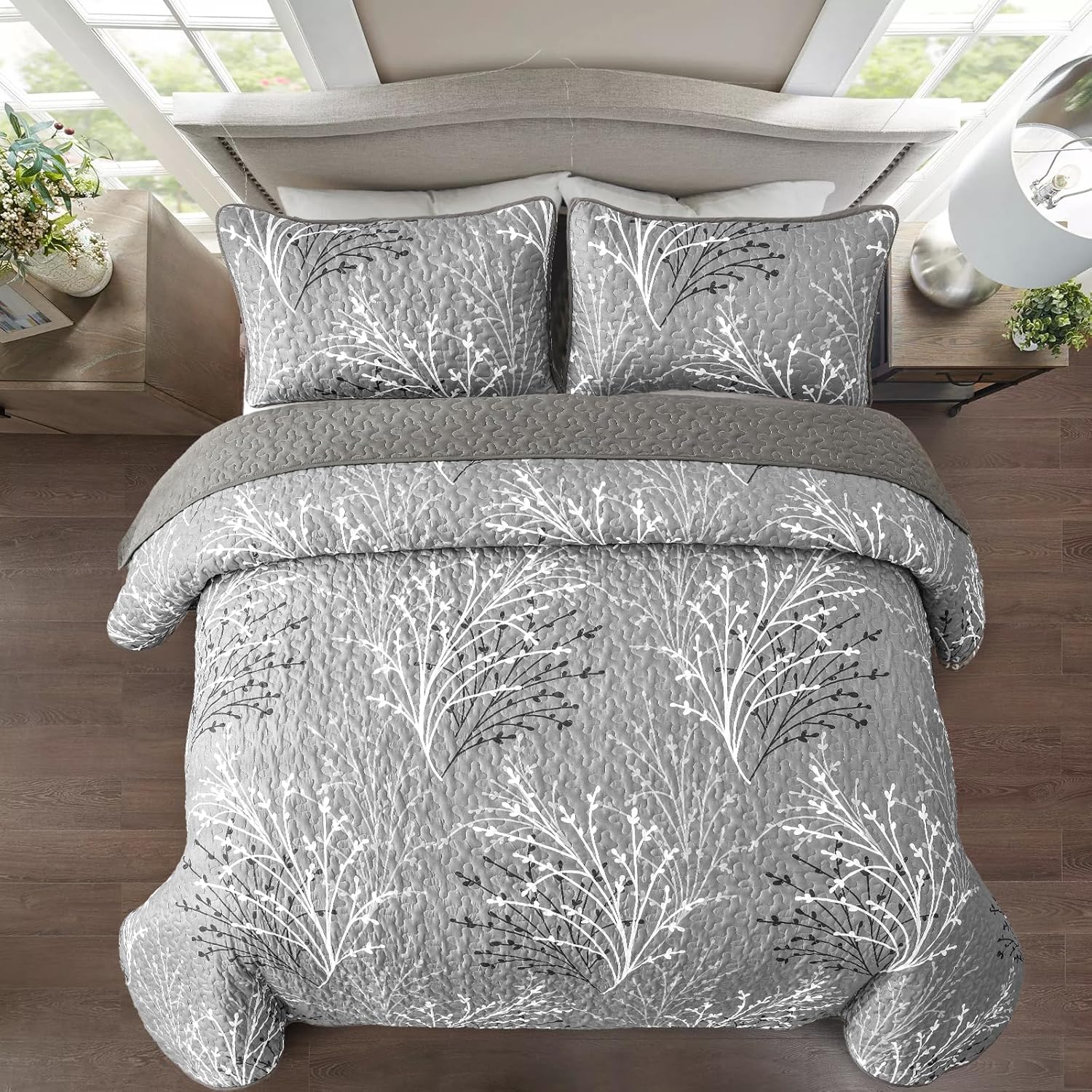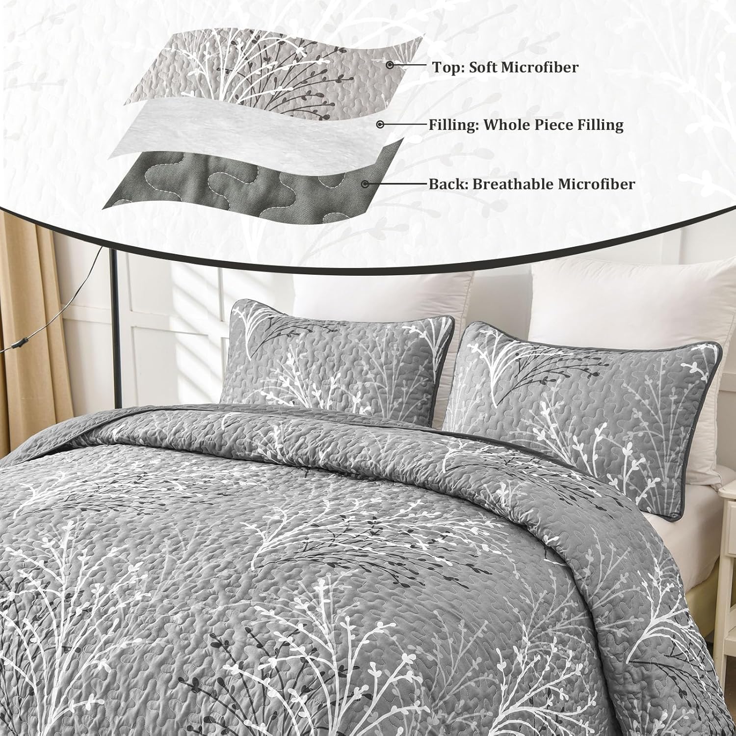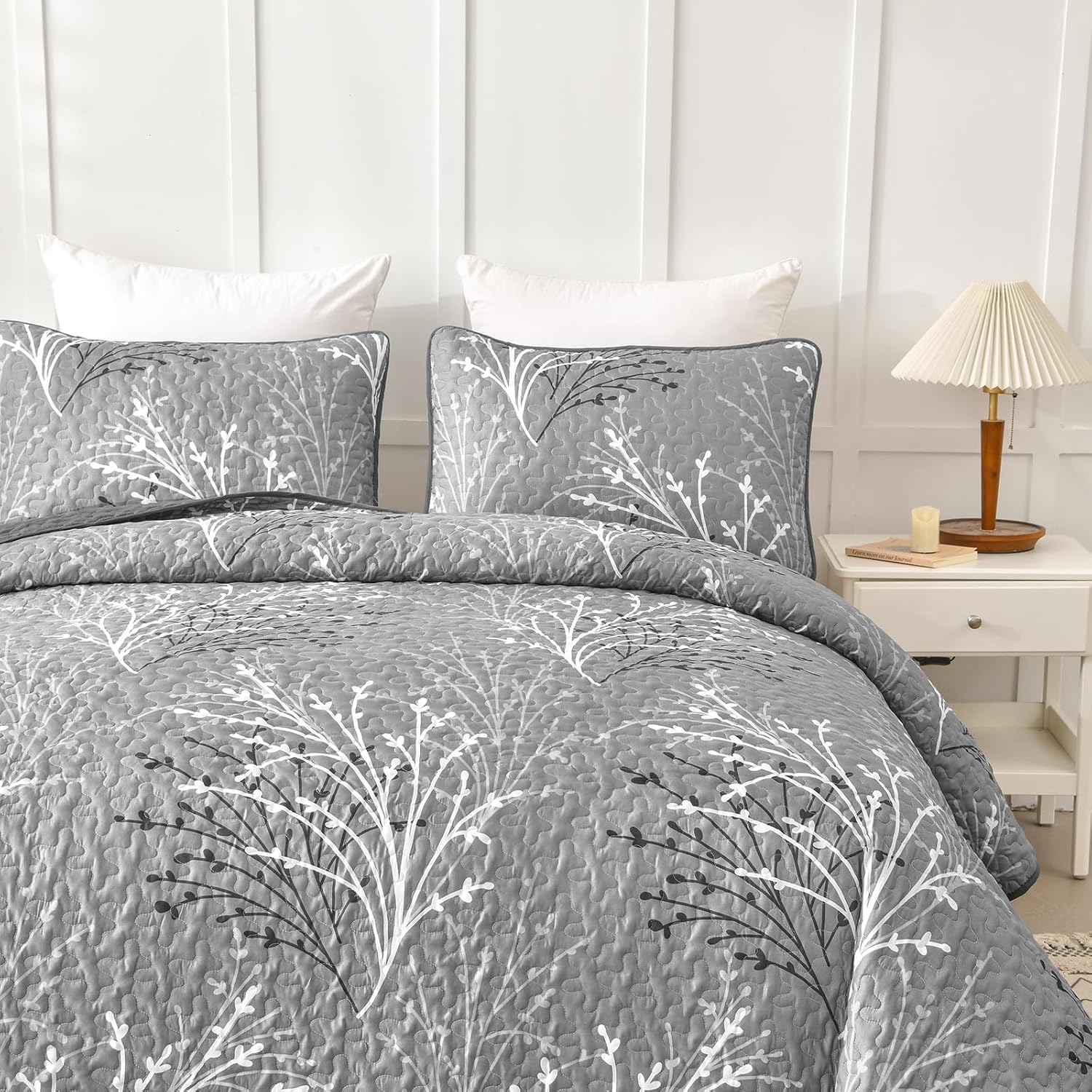 Extra Soft: This gray plants botanical quilt set features an advanced quilting technique on brushed microfibre for superior softness. Matching pillow shams for the whole bedroom reflect the design of the quilt, while the solid color reverse balances the look.