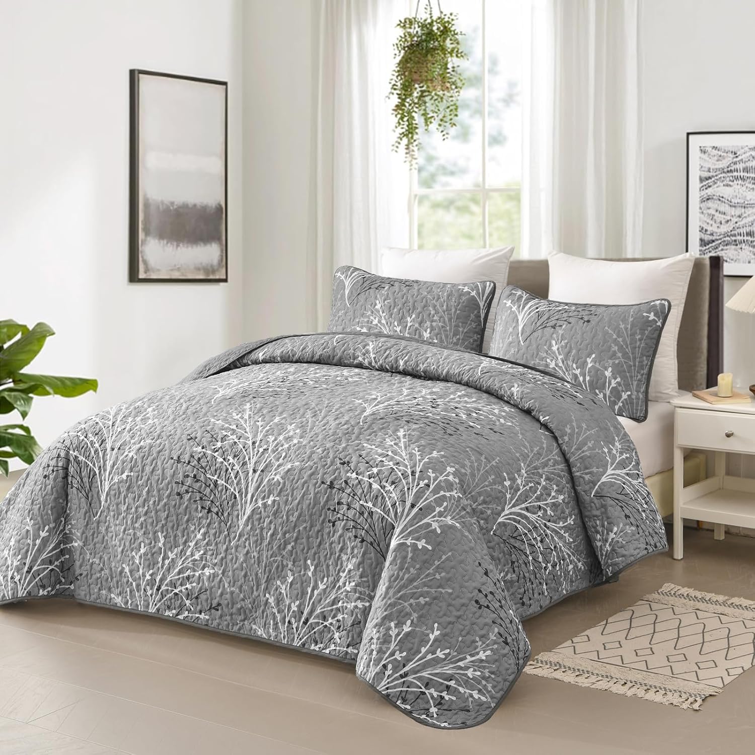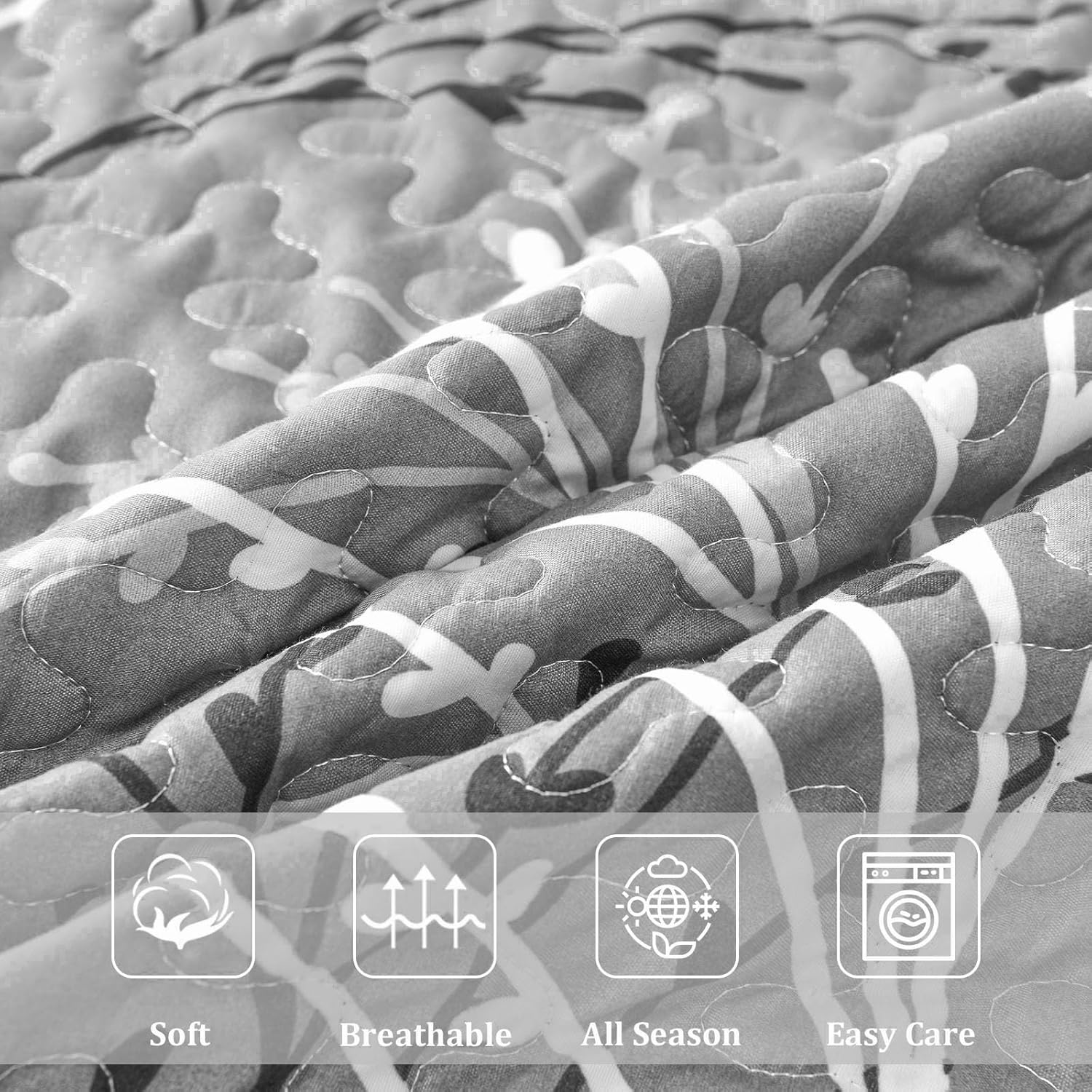 Grey Botanical Quilt: Elegant and stylish cozy quilt set, update your bedroom decor with a beautiful pattern. Classic grey color with plants design added fresh and beauty to this floral quilts. The super-soft fabric also gives you extra comfort for a better night’s sleep.