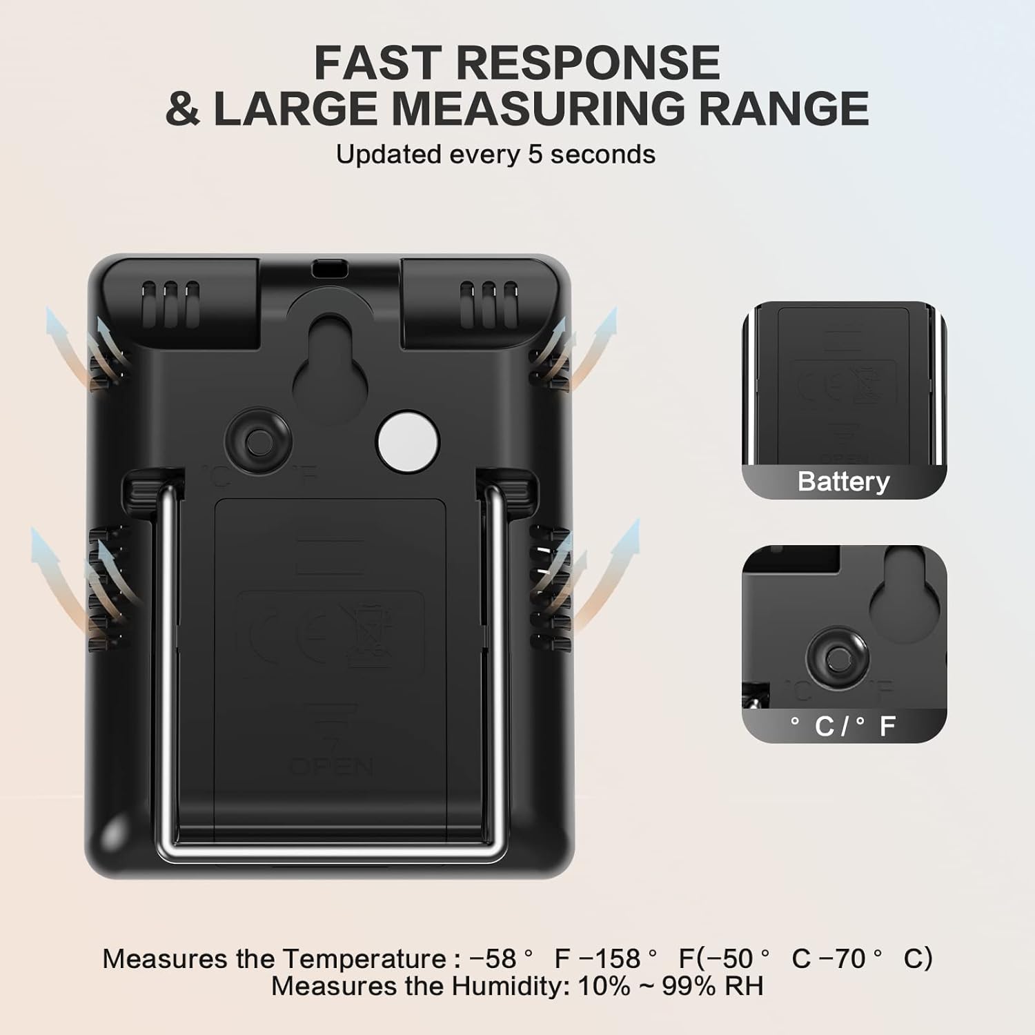 [High Accuracy & 5s Fast Refresh]: Built-in smart temperature humidity sensor, the indoor thermometer is accurate to ±1°F while humidity is ±5%RH. Enjoy precise data from the room thermometer indoor every 5 seconds