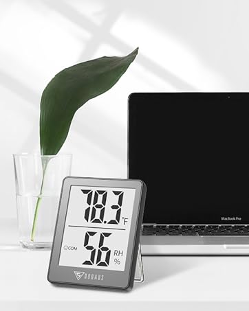 [Air Comfort Indicator]: DOQAUS humidity meter features 3 different face icons to indicate DRY/COMFORT/WET air condition. Remind you to adjust your humidifier or dehumidifier accordingly and help you will always live in the most comfortable environment