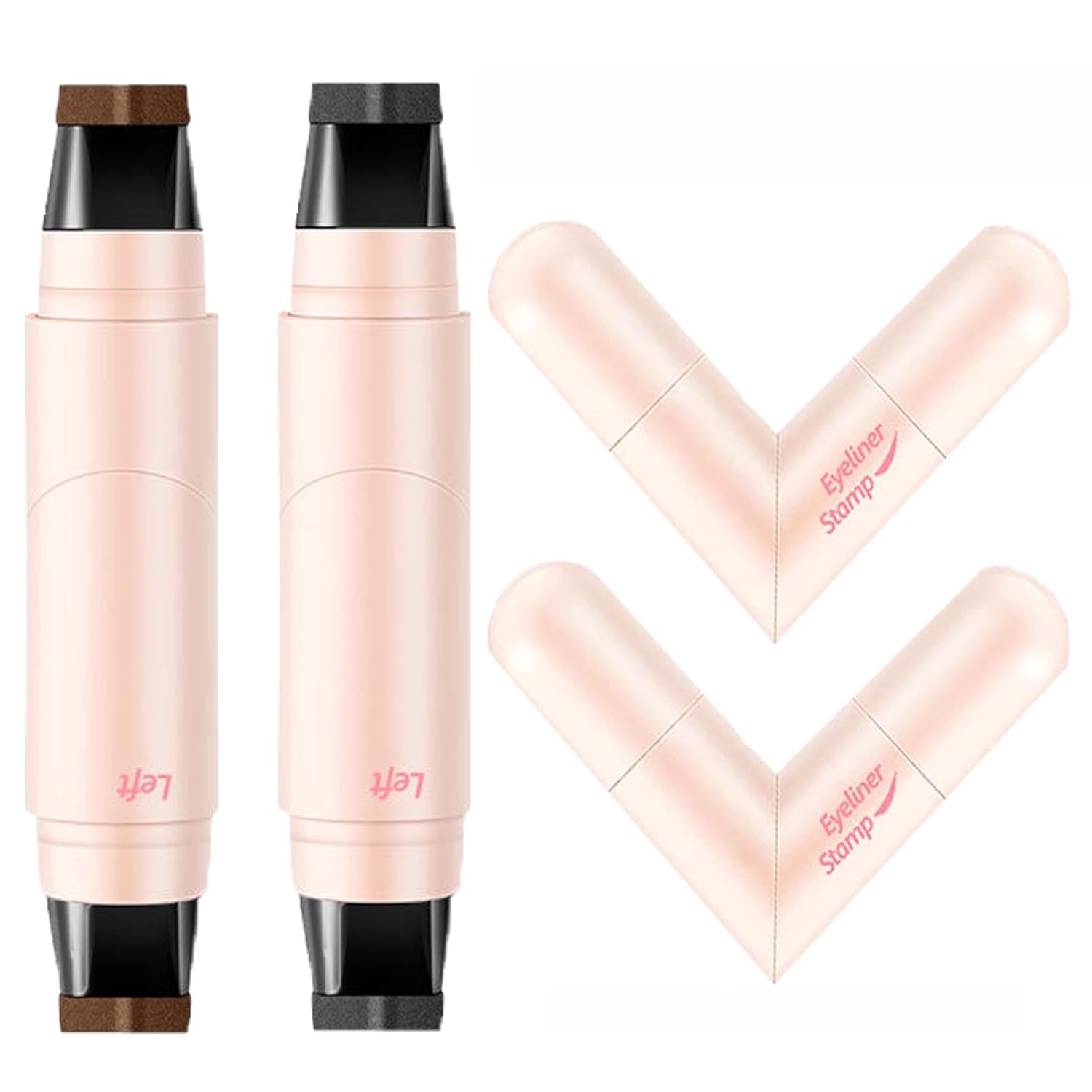 Double Headed Eyeliner Stamp, 2 Colors Waterproof Long Lasting Smudge Proof Liquid Eyeliner Pen, New Foldable Eyeliner Stamp, Gel Eyeliner Pencil Eye Makeup Pen (Black+Brown)