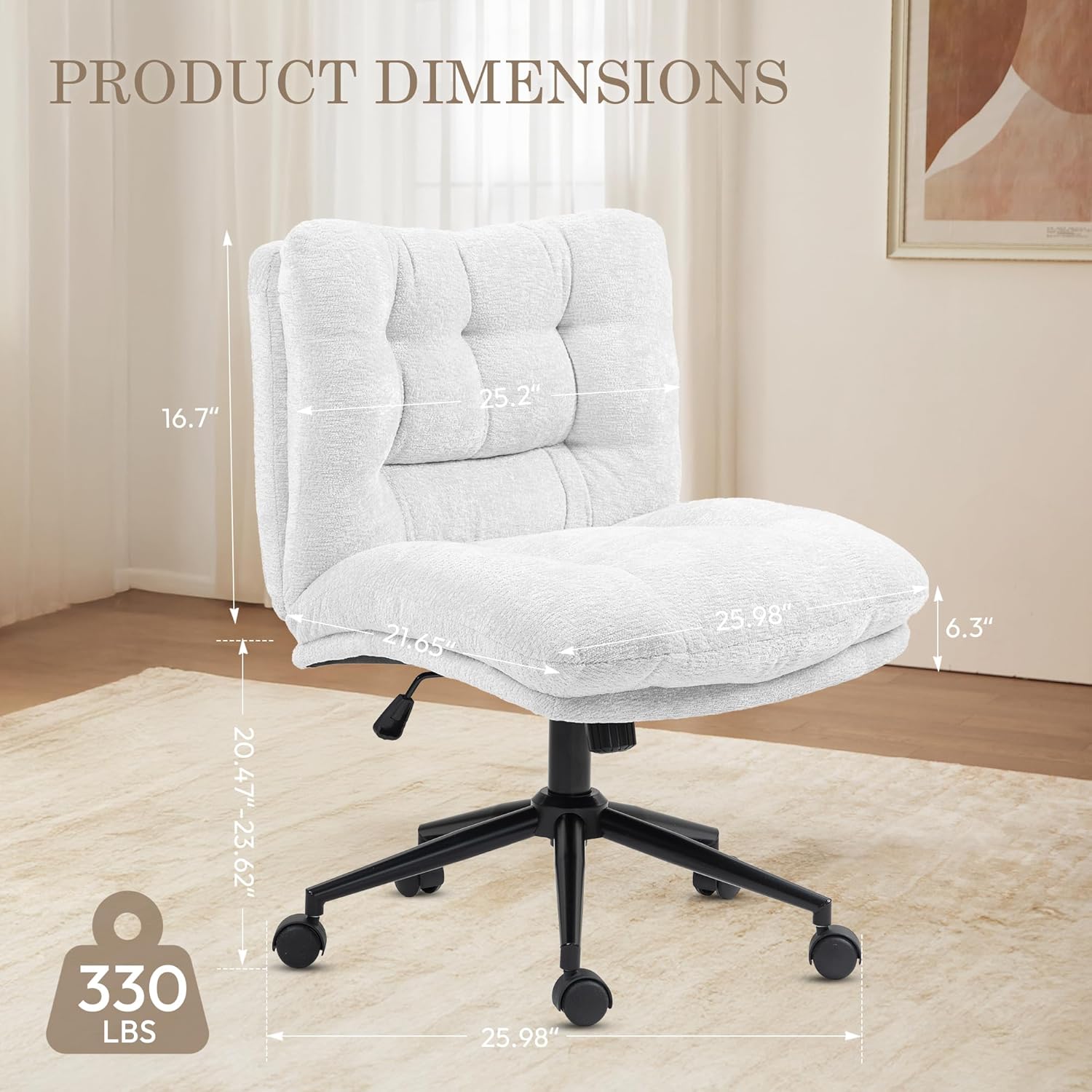 Dowinx Criss Cross Chair with Wheels, Dual-Layer Thickened Cushion, Premium Fabric Morden Home Vanity Chair Wide Seat, Cream White
