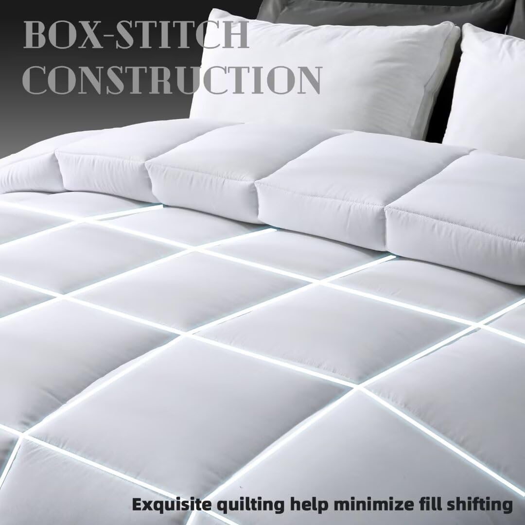 *Box-stitch construction* Keep the fill from shifting or clumping, ensuring a smooth look and soft feeling for long time. Four duvet loops-sewn corner, help the comforter to grab a duvet cover.