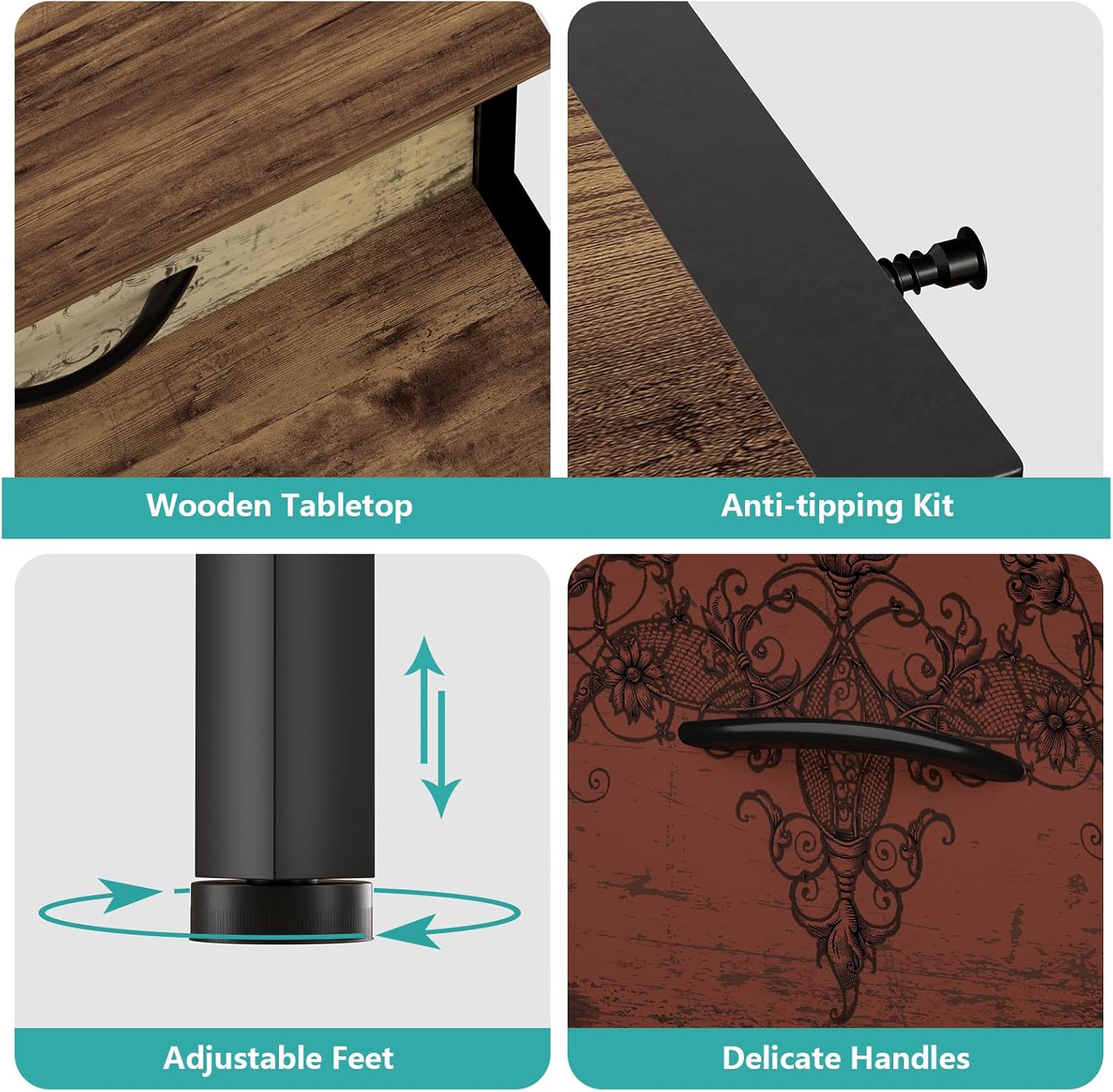 Dresser for Bedroom with 9 Drawers & 2 Open Shelves, Fabric Storage Cabinet, Chest of Drawers, Long Dresser for Closet, Wooden Top & Metal Frame, Pattern