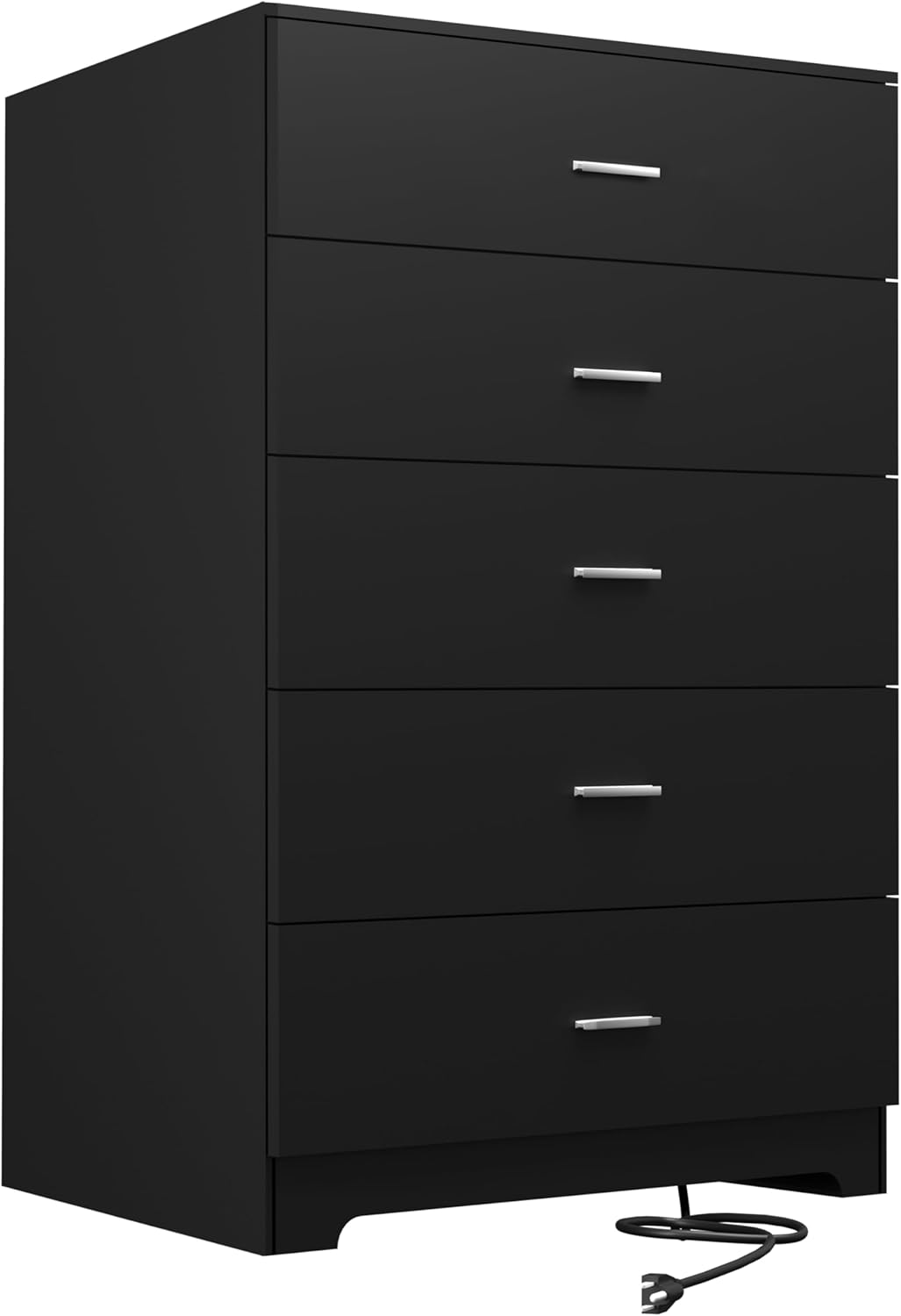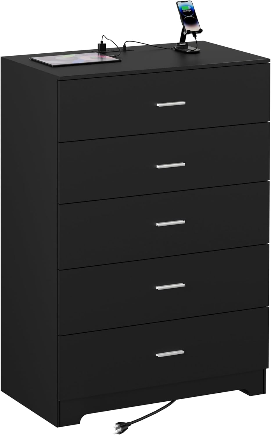✔【Multi-functional Upgrade】 GEPELCN 5 Drawer Dresser with Charging Station with 2 AC outlets, 2 USB ports and 1 Type C port, easy to power your appliances without extra cables!
