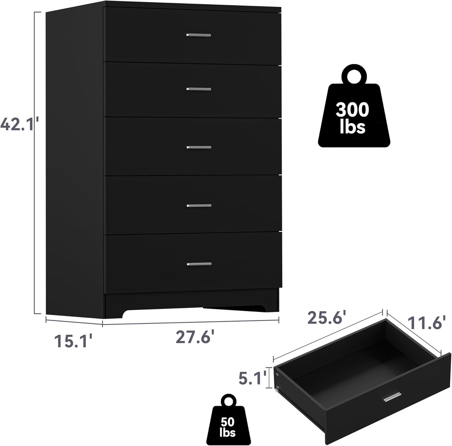 ✔【Extra Large Storage Space】 The Tall dresser measures 42.2 inches high X 27.6 inches wide X 15.1 inches deep. GEPELCN dresser not only takes up little space, but also has a large storage space, 5 large wooden drawers for shirts, sweaters, pants, sweatshirts and other items, keep the room clean and tidy at all times.