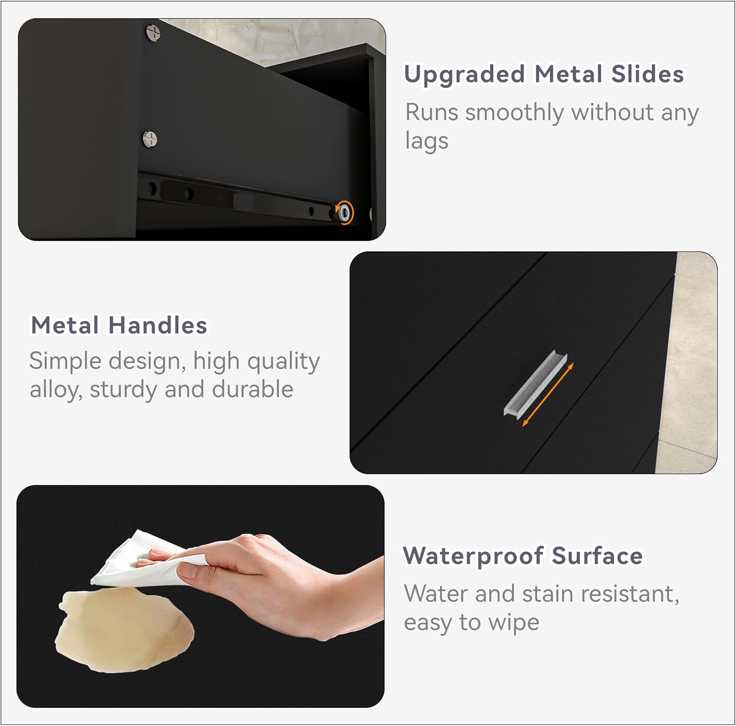 ✔【Modern Dresser】 The black dresser style is simple and modern, very classic. It can match any home style, ample storage space and classification function make it a perfect match for bedroom, living room, study or hallway, children’s room, make your space more neat and bright.