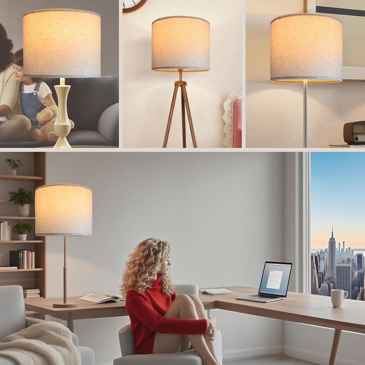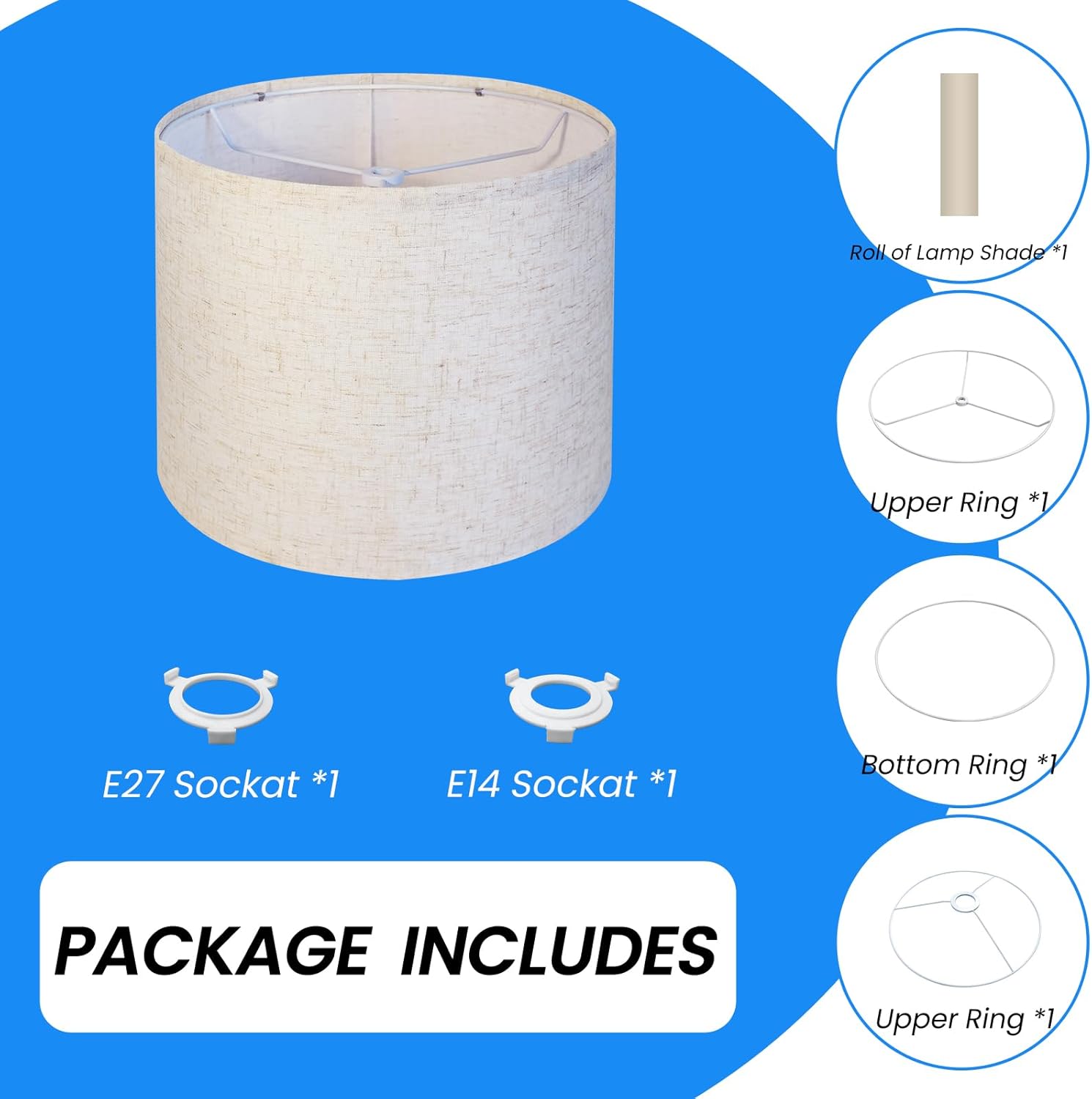 Drum Lamp Shades, 9″ x 9″ x 8.3″ Linen Lamp Shade Replacement for Table Bedside Wall Floor Lamps with Handcrafted Spider & E26-E12 Fitter, Beige