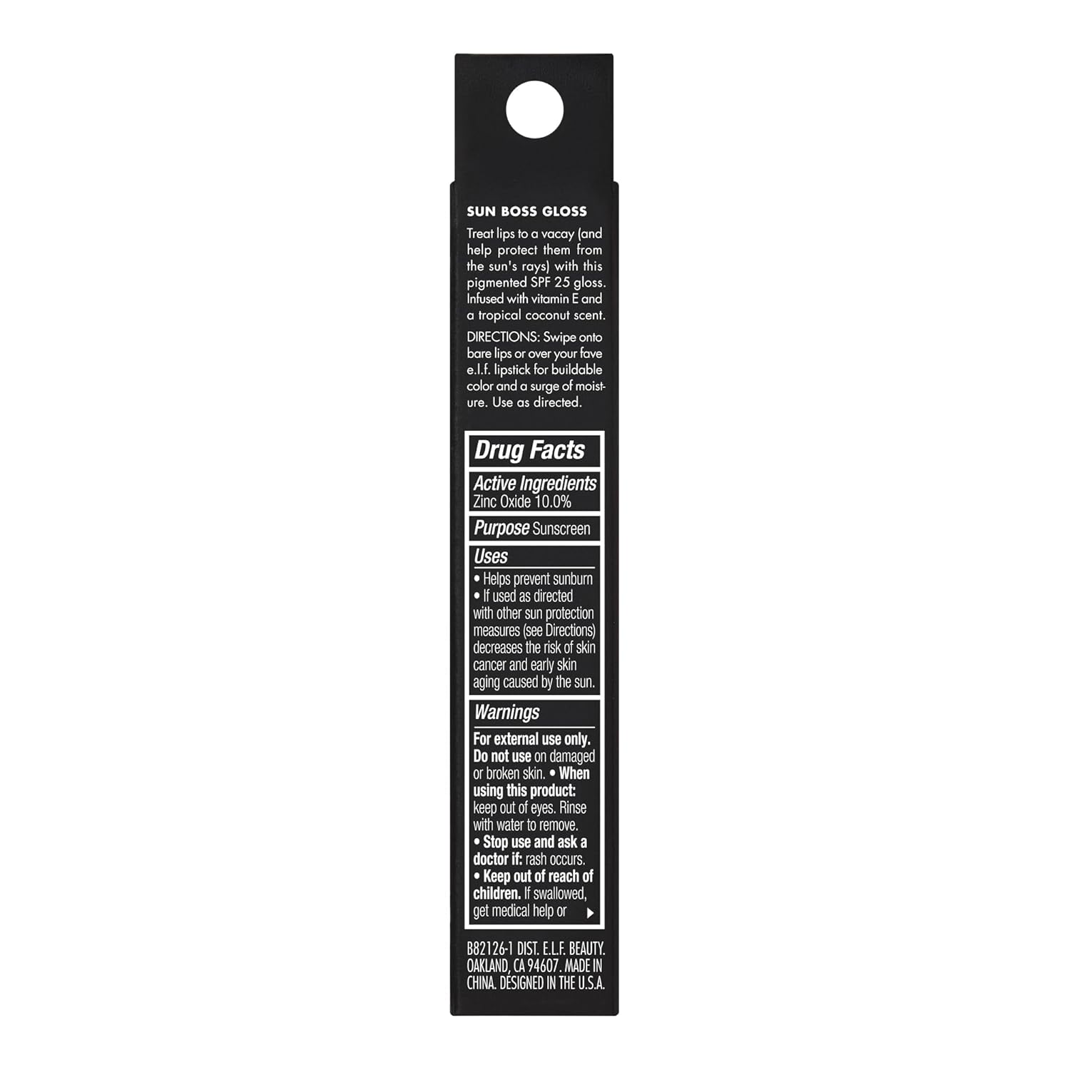 SPF like a gloss with e.l.f. Cosmetics Sun Boss Gloss! This lip-enhancing tinted lip gloss delivers mineral SPF 25 sun protection, buildable color and a high-shine finish. The moisturizing formula is infused with conditioning vitamin E and hyaluronic acid, plus a delish coconut scent that treats lips to a tropical vacay.