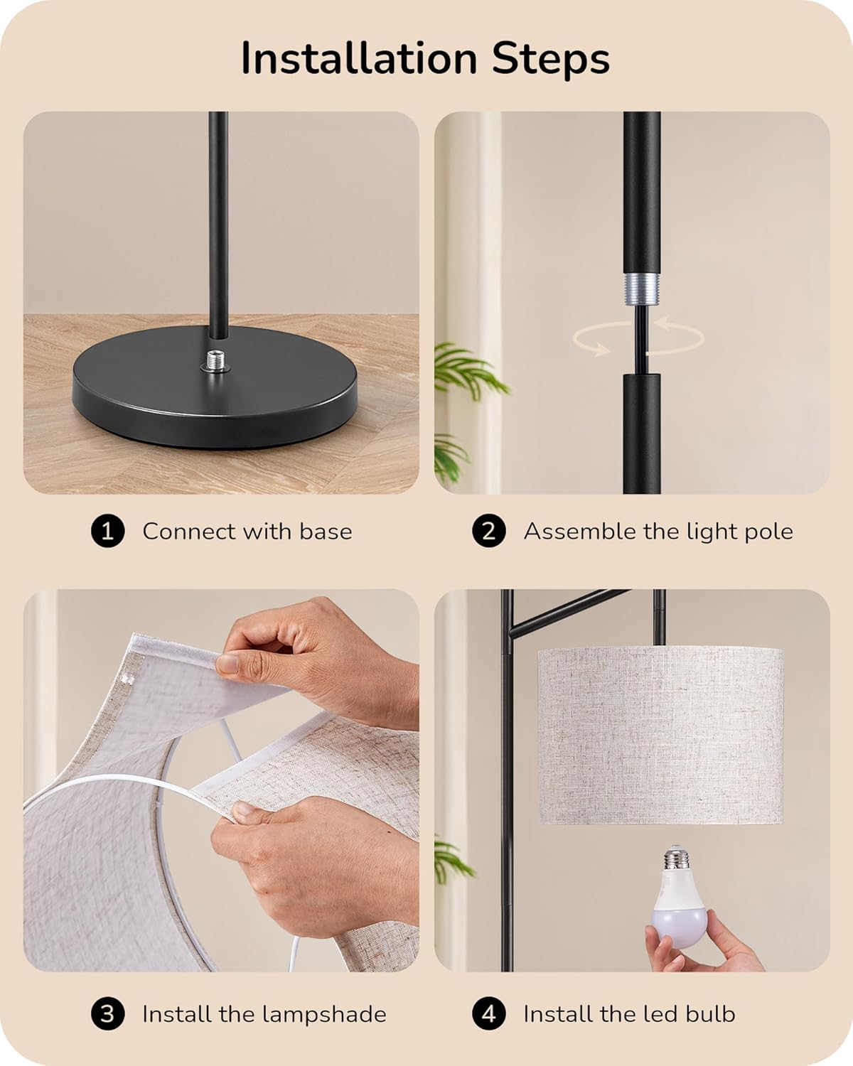 [Easy Assembly in Minutes] Designed for quick setup, the 64.7 inch tall floor lamps for living room includes all components and a step-by-step video guide; no tools needed, assemble it within minutes and enjoy bright, stylish lighting right away