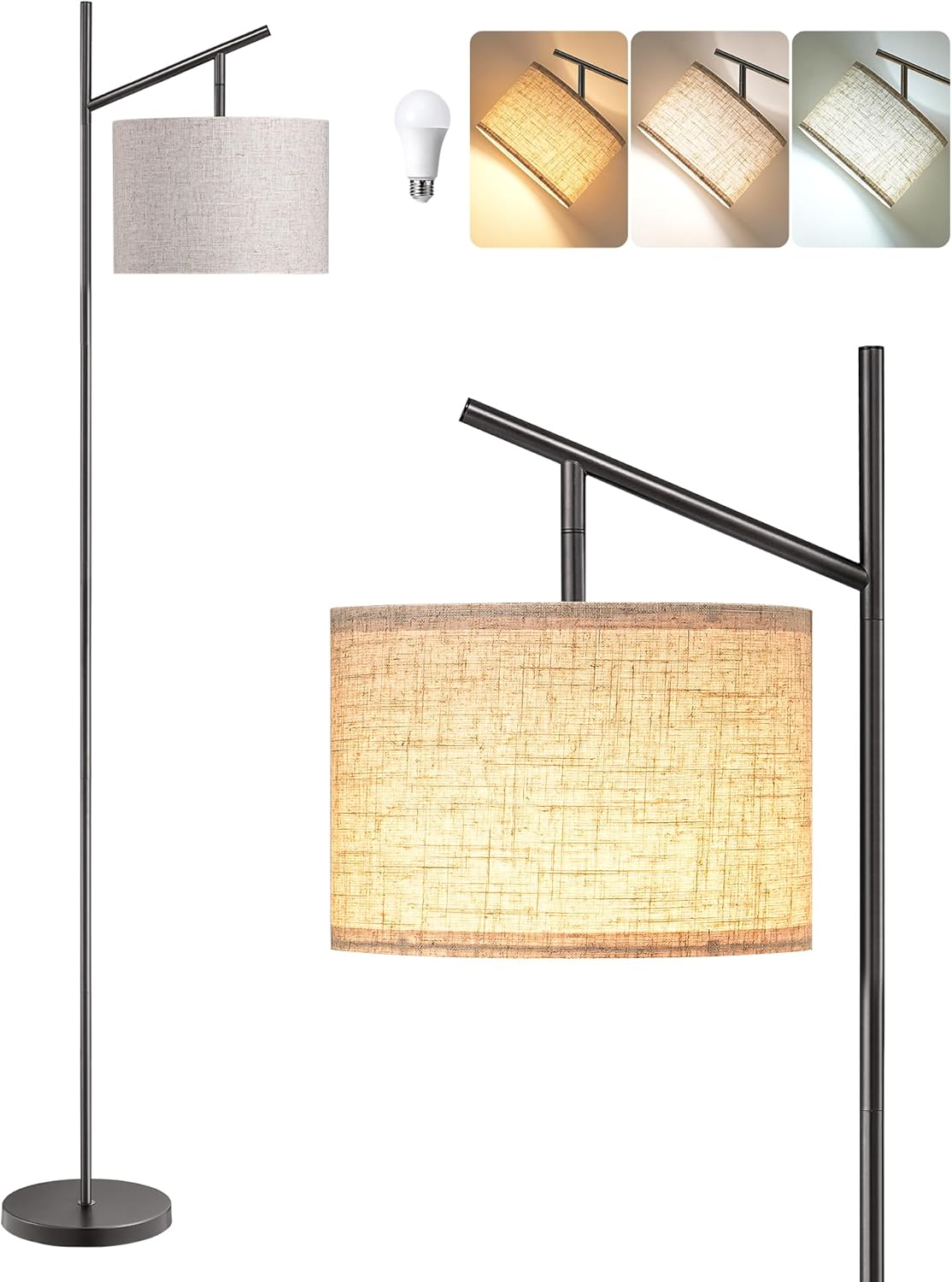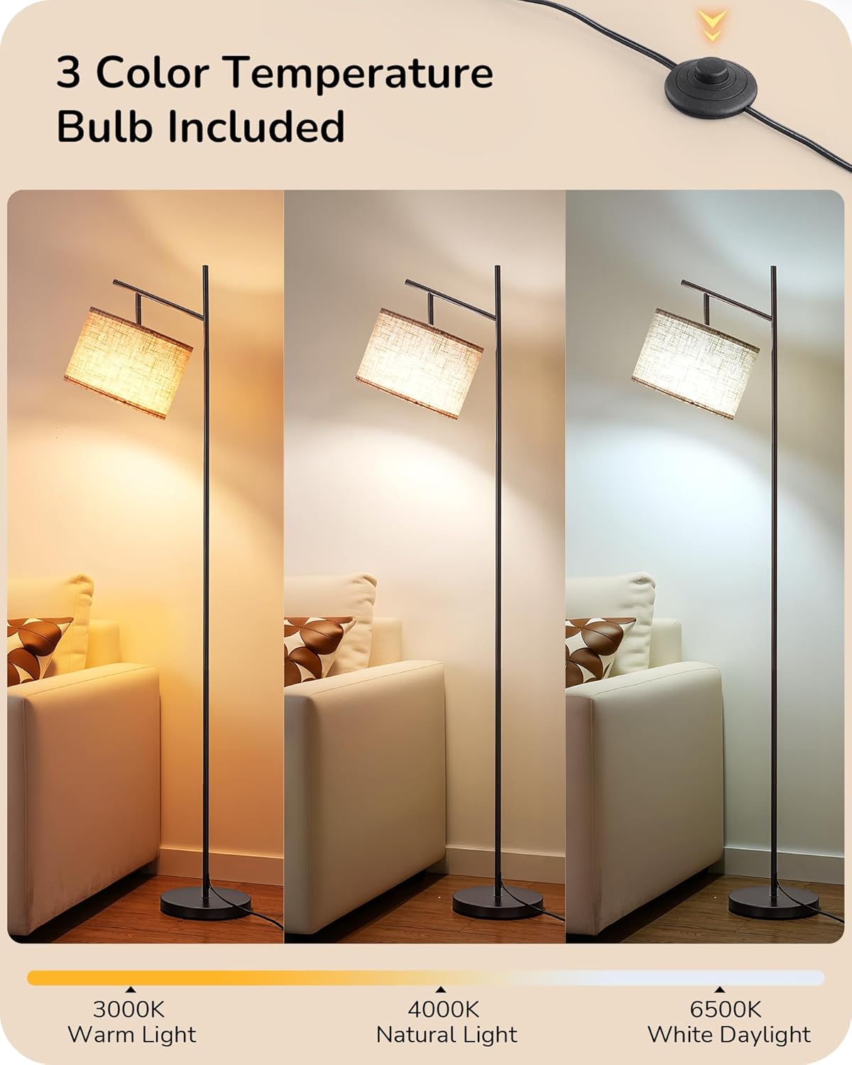 [3CCT LED Bulb Included] This beige shade modern floor lamp with an 8W A19 LED bulb, 3 adjustable color temperatures: 3000K (warm white), 4000K (neutral white), and 6500K (cool white), from warm ambient light to bright task lighting; memory function restores your last setting