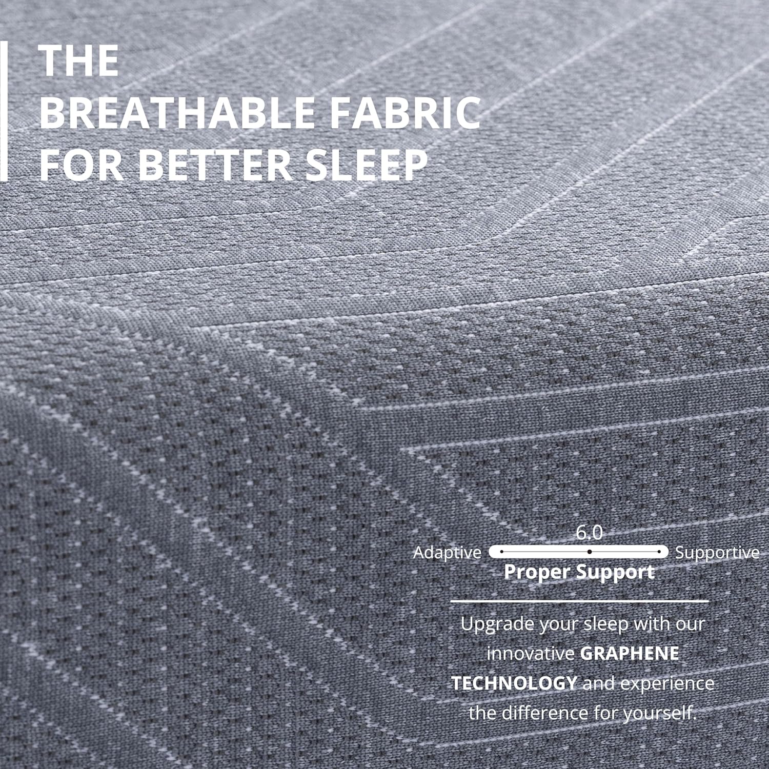Graphene Technology Cover – Nylon-feel cover is deodorizing and antistatic qualities. Therapeutic properties from its far infrared fabric promotes blood circulation to provide individuals with enhanced performance and overall wellbeing.