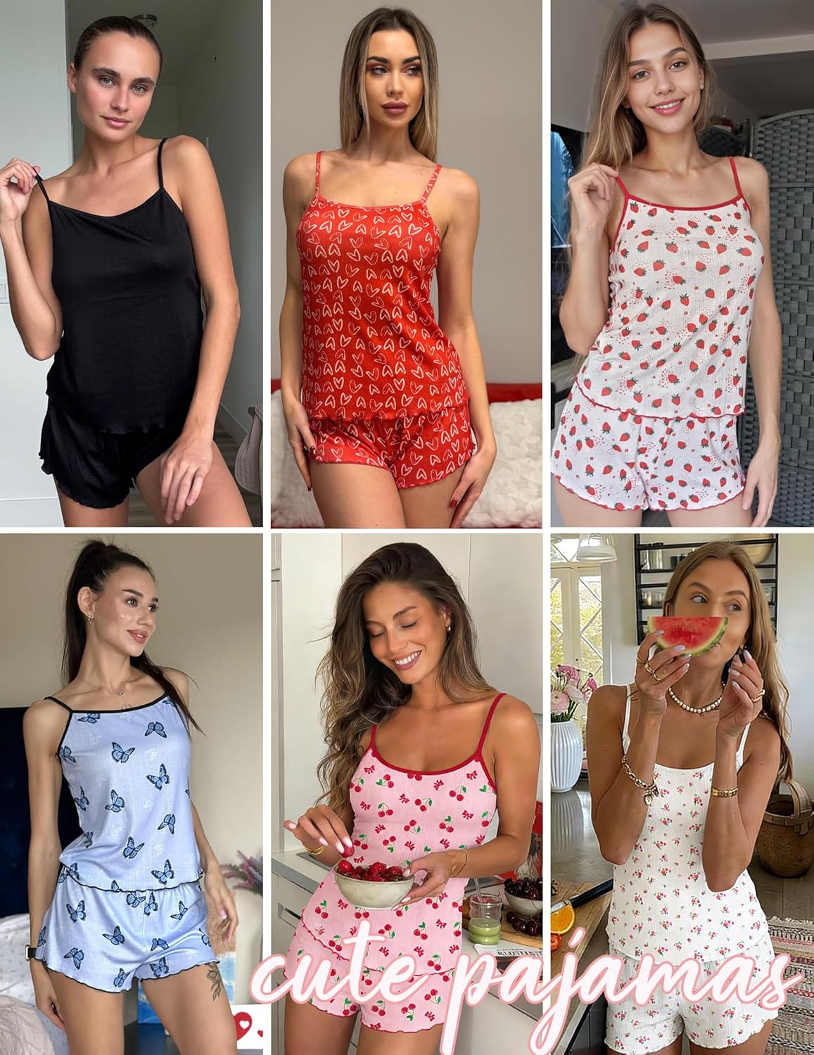 Ekouaer Pajama Sets for Women 2 Piece camisole Pjs Cute Print Lingerie Sleepwear Ribbed Sexy Cami Nightwear S-XXL Experience ultimate comfort and style with these premium women’s pajama sets, crafted from luxuriously soft ribbed knit fabric with exceptional stretch. The breathable, moisture-wicking material provides gentle, skin-friendly comfort that ensures peaceful sleep throughout the night without any restrictions. Each trendy set features an elegant camisole top paired with matching shorts, showcasing adorable print patterns and sophisticated contrasting trim details. The adjustable shoulder straps allow for a perfectly customized fit, combining comfort with fashionable appeal that you’ll love wearing. These versatile pajamas are perfect for multiple occasions – ideal for sleeping, lounging around the house, weekend relaxation, vacation getaways, or casual indoor activities. The stylish camisole top easily doubles as a chic tank top, perfect for pairing with jeans or other bottoms for a casual daytime look. Looking for the perfect gift? These beautiful pajama sets make thoughtful presents for girlfriends, wives, sisters, or close friends during Valentine’s Day, birthdays, anniversaries, or any special occasion. They’re sure to be appreciated and loved. Caring for your pajama set is effortless – simply machine wash cold with similar colors, tumble dry on low heat, avoid bleach, and use a laundry bag to maintain the fabric’s quality and longevity. Enjoy lasting comfort and style with minimal maintenance required.