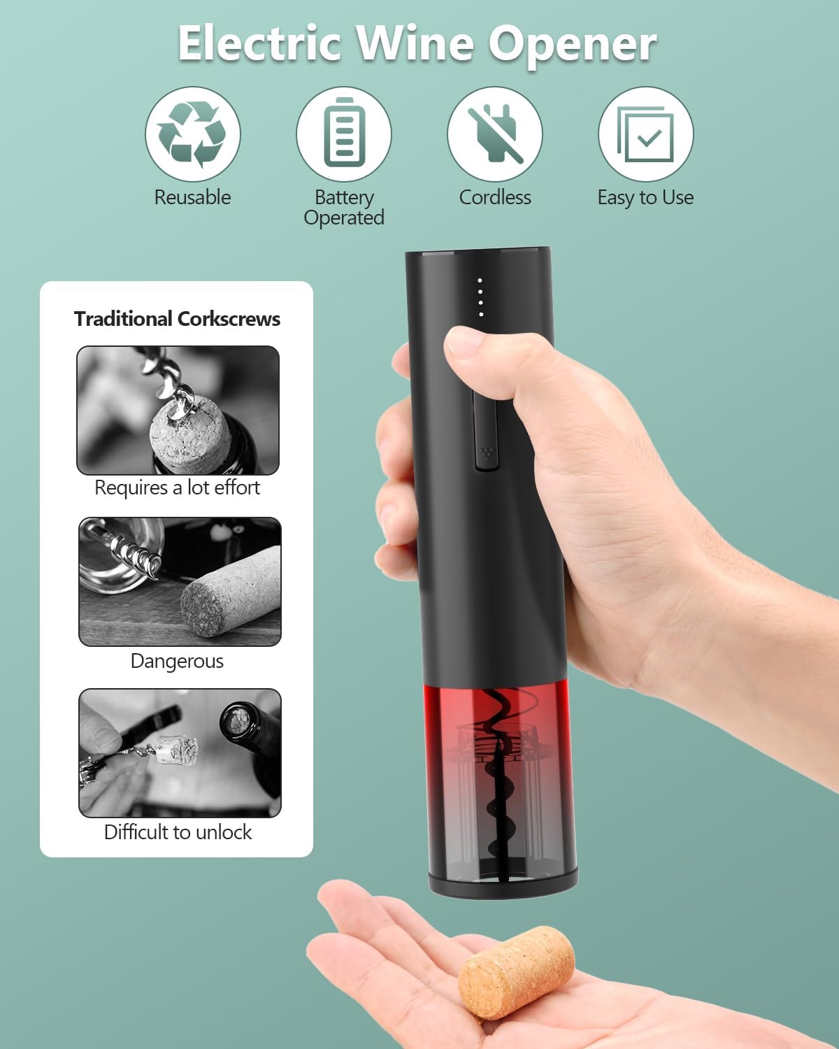 Christmas Gift Effortless Electric Wine Opener for Memorable Celebrations: Uncork your favorite wine in seconds with this rechargeable electric wine opener, perfect for holidays and special occasions.