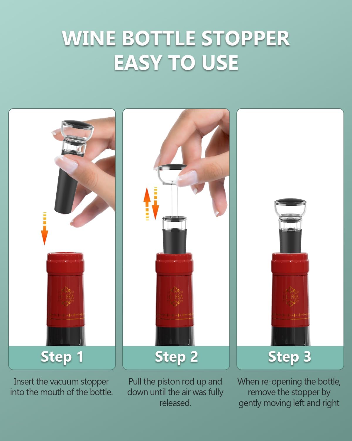 Enhance Flavor and Preserve Freshness for Up to 7 Days: The advanced aerator instantly improves wine taste, while vacuum stoppers lock in freshness, making every bottle last longer.
