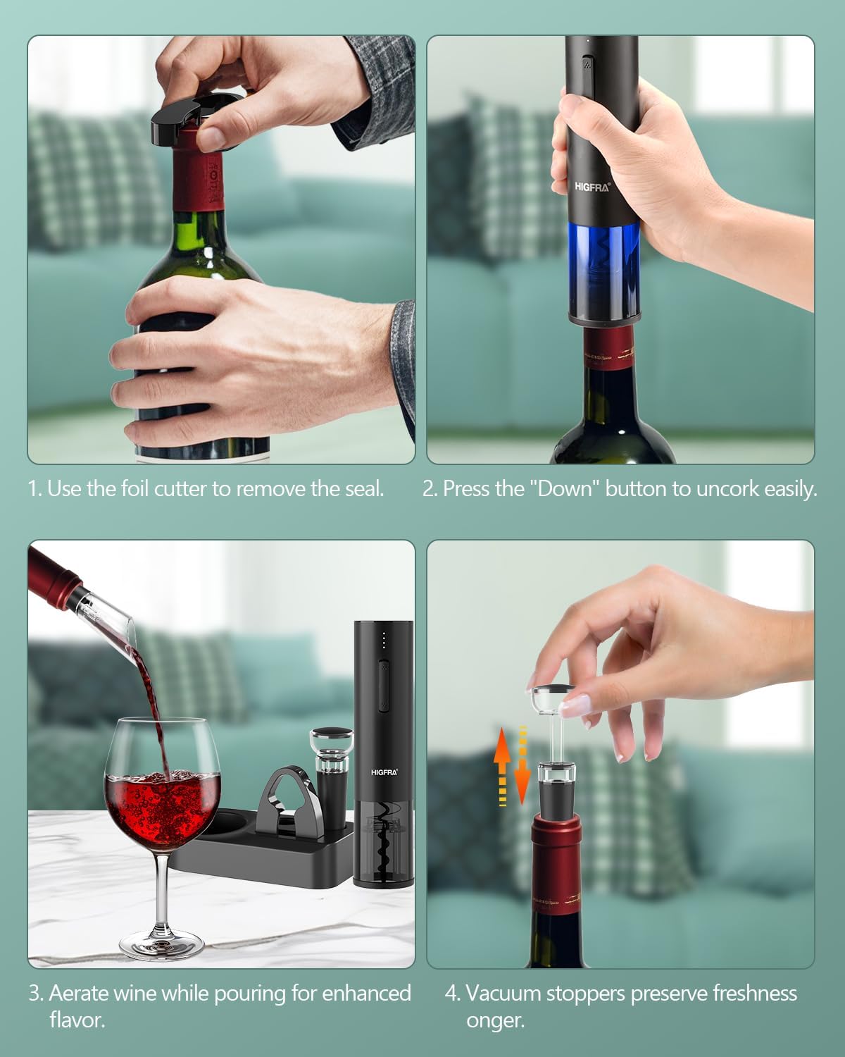 4-in-1 Wine Accessory Gift Set for Christmas, Valentine’s Day, Mother’s Day, and Father’s Day: Includes an electric wine opener, aerator, vacuum stoppers, and foil cutter—everything needed for a premium wine experience.
