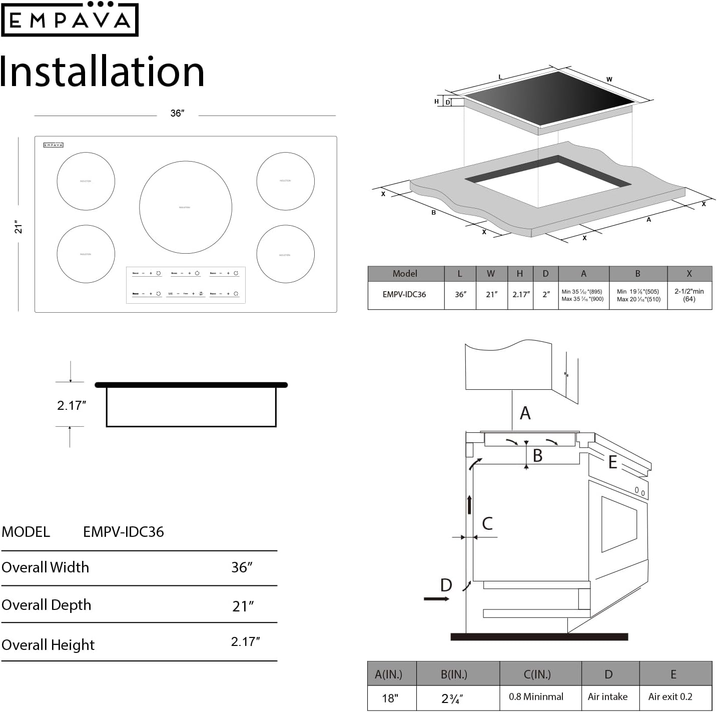 Empava 36 Inch Built-In Electric Induction Cooktop, 5 Zone Smooth Glass Surface, Touch Sensor Panel, Power Boost, Timer Control, Child Lock Feature, Hardwired Kitchen Appliance