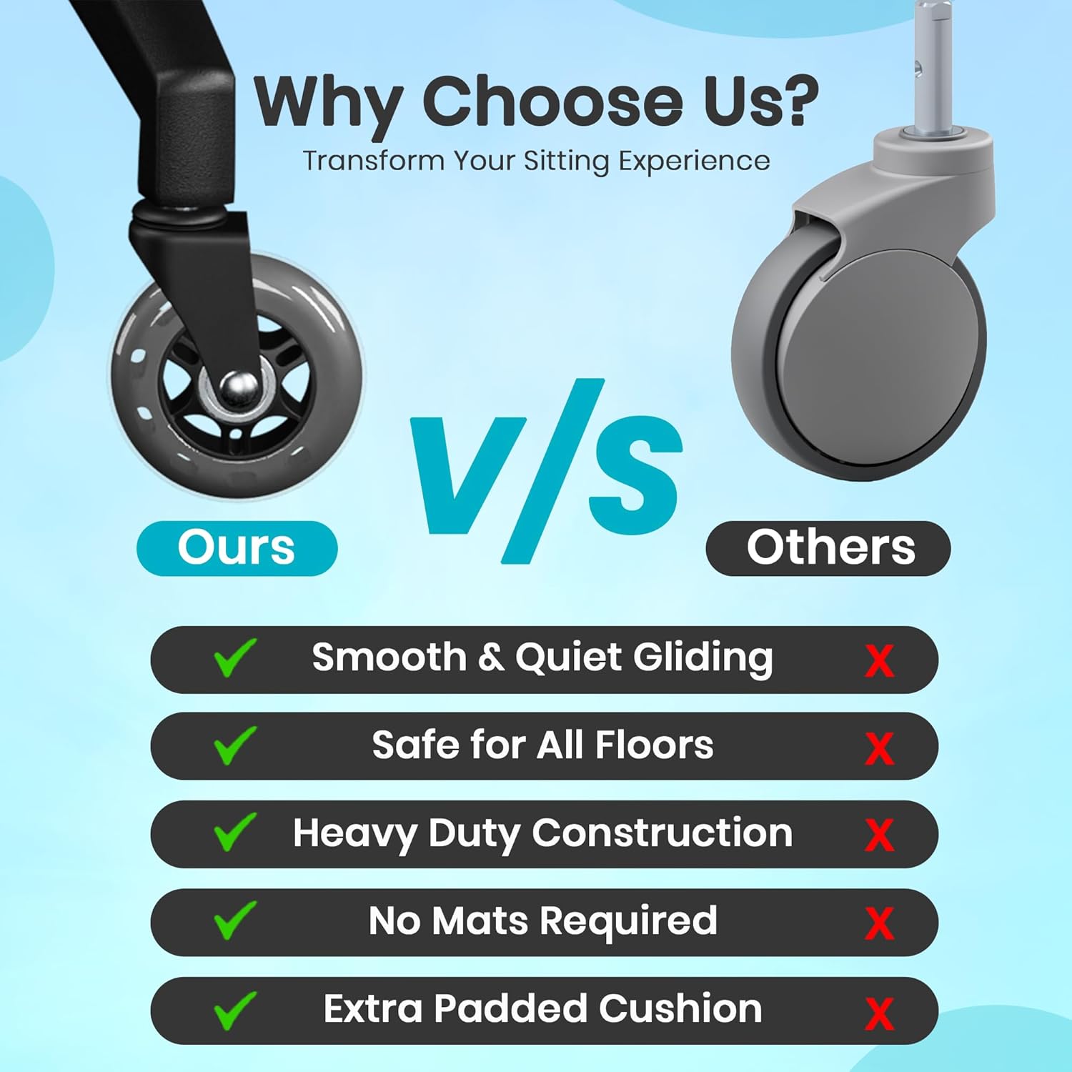 Versatile Mobility: The meditation chair with strong lumbar support features smooth rubber wheels, facilitating easy movement across different surfaces. Its 360-degree swivel function enhances its versatility as a criss cross office chair with wheels.
