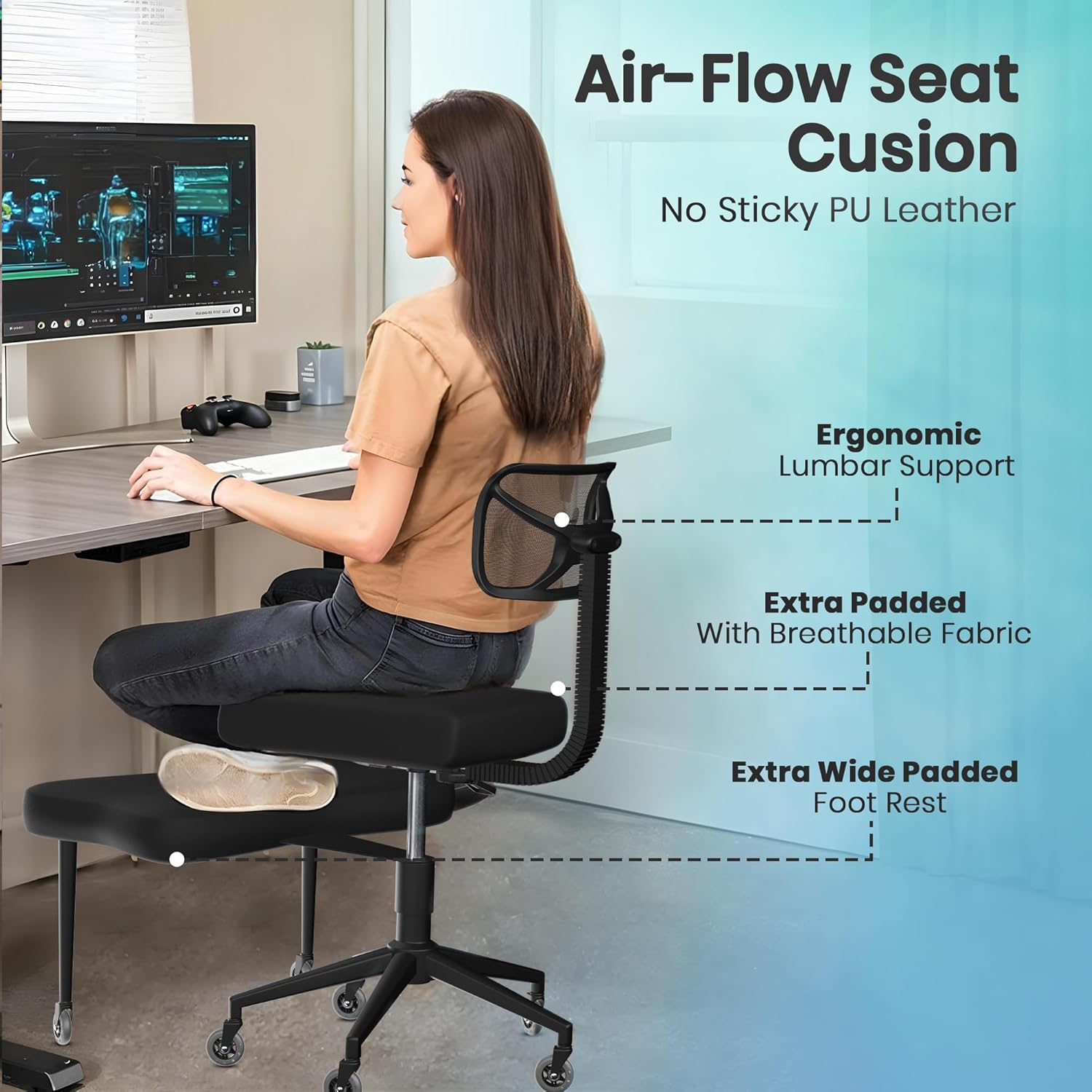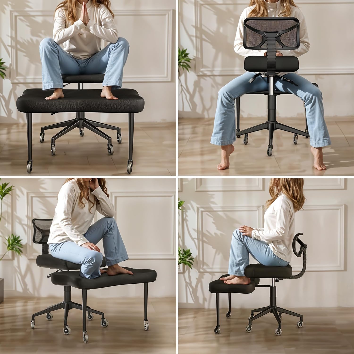 Adjustable Height: This cross legged office chair is equipped with an adjustable height mechanism, catering to users who prefer a criss cross office chair setup. The kneeling chair feature is complemented by the wobble stool capability, promoting better ergonomics.
