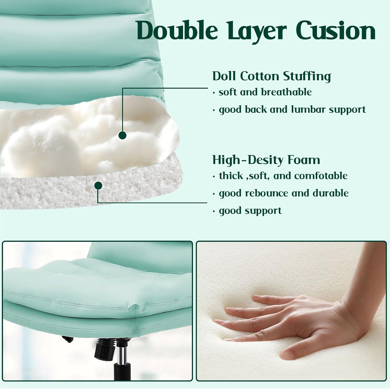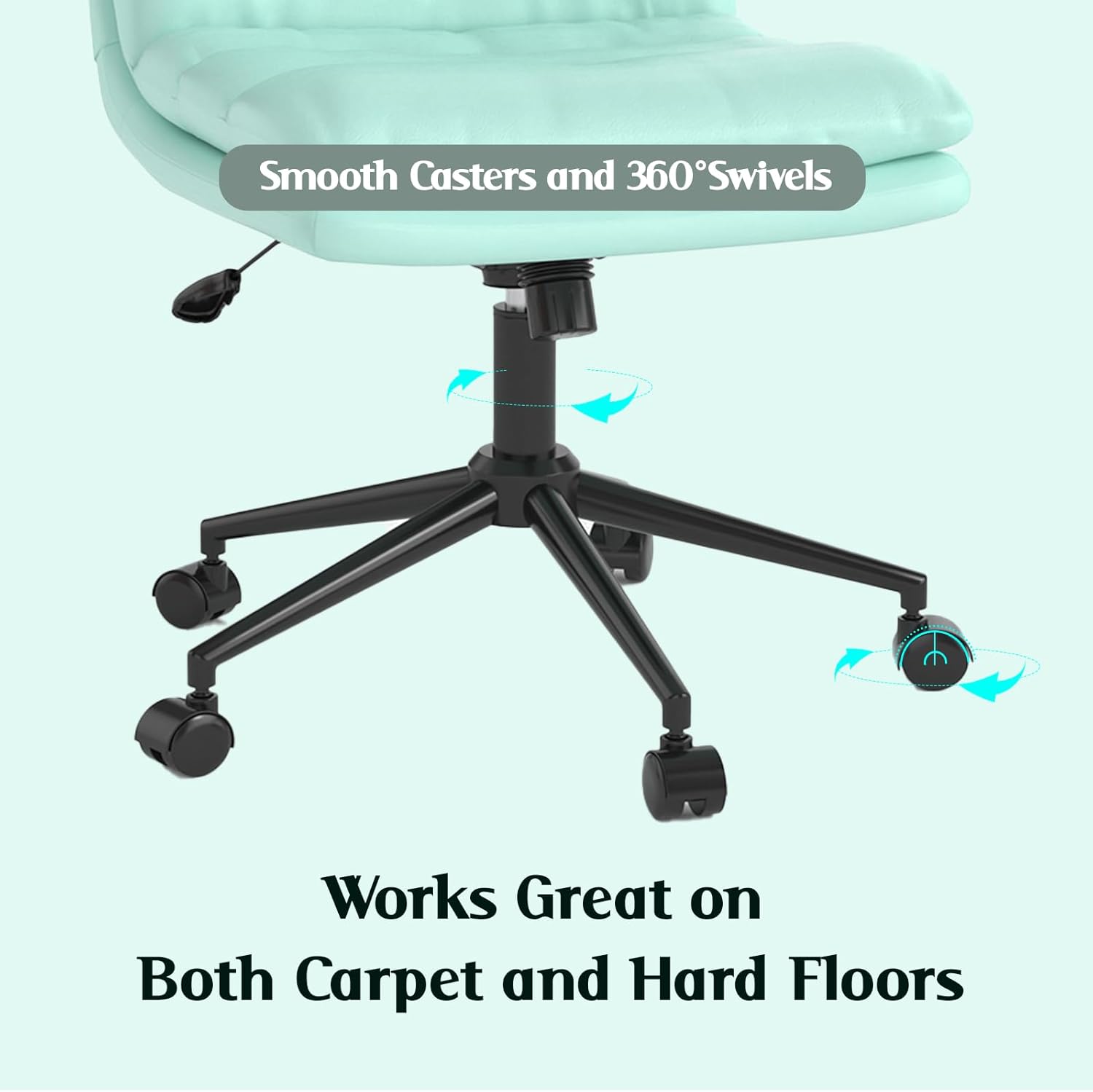 【Armless Office Chairs with Wheels】: this cross legged office chair with wheels has no arms and it is convenient for storage and won’t take up much space like normal office chair with arms, but provides same or even better sitting experience.