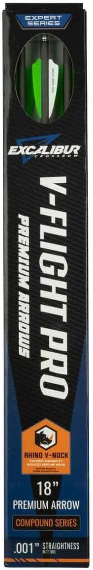 Excalibur V-Flight Pro 18″ Carbon Fiber Arrows with Rhino V-Nocks for Compound Crossbows, 6-Pack (22VFP18-6) | Durable Archery Hunting Accessories