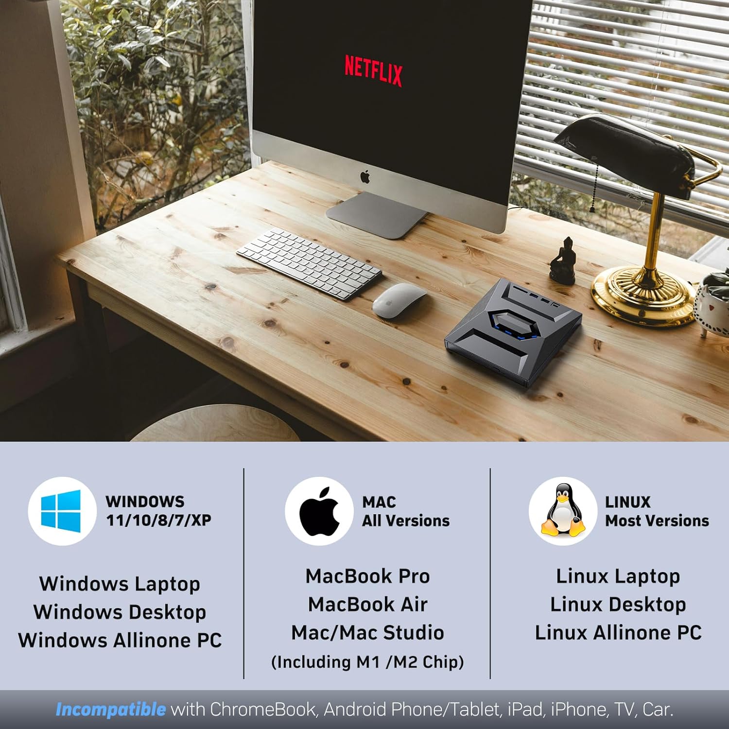 【Wide Compatibility】The blu ray drive external is ideal for various devices, it compatible with Laptop Windows 11/10 PC Mac OS MacBook, you can use this blu-ray drive with almost all computers including MacBook Pro/Air, iMac, Windows laptop, and desktop PCs. This Blu-ray drive can not work for iPad/ Tablet / Projector / TV/ Chrome OS/ Car/ Smart Phone.
