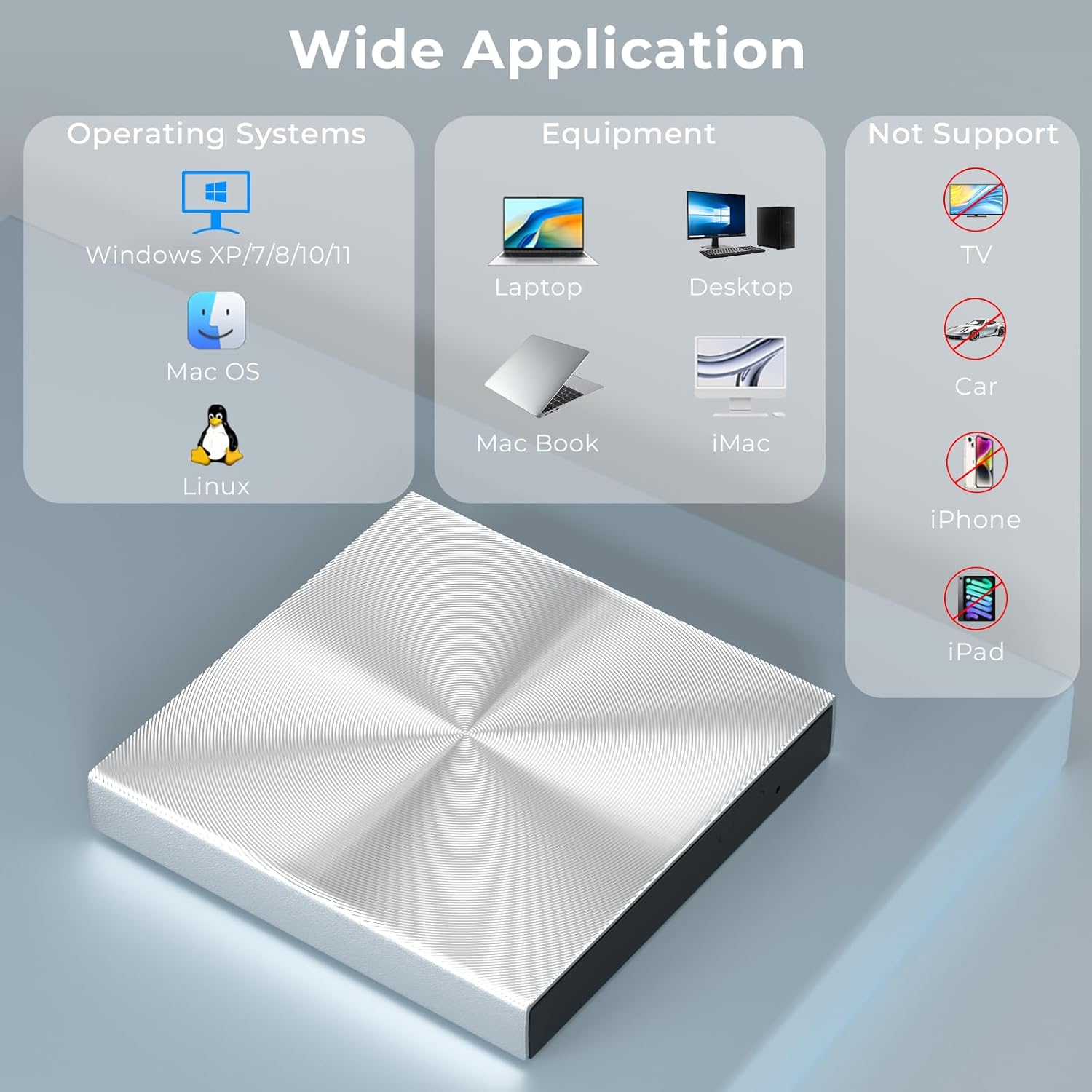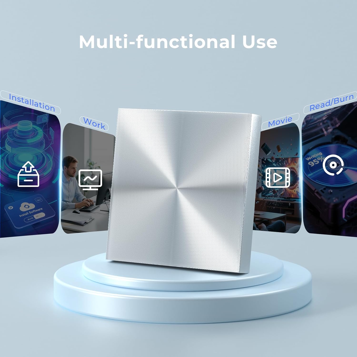 External Blu Ray DVD Drive Burner, USB 3.0 and Type-C Optical Slim Bluray CD DVD Reader Writter for Laptop Desktop PC Compatible with MacBook OS Windows XP/7/8/10/11 Linux