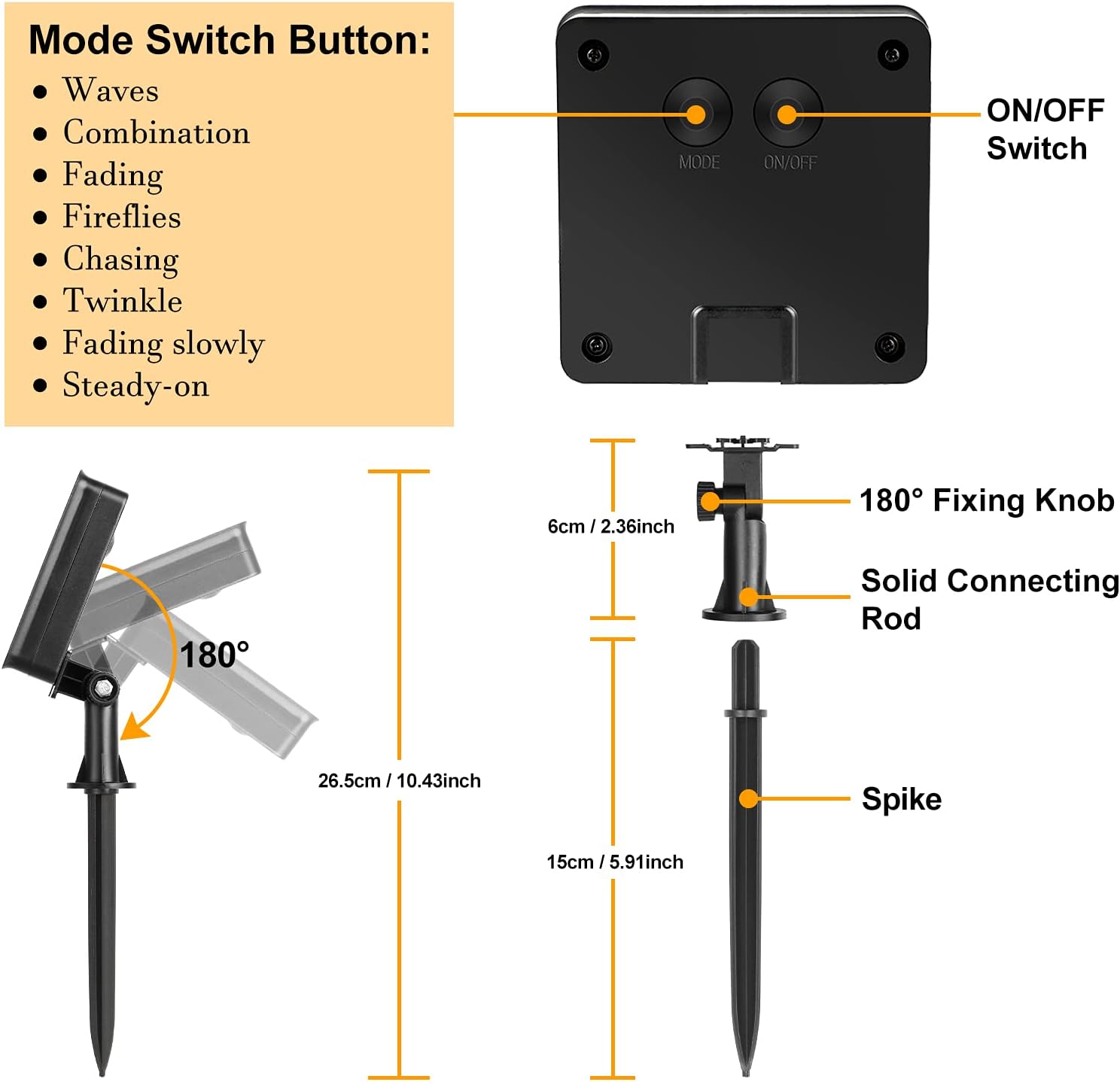 Simple button operation makes it so easy to control the lights. 8 lighting modes are definitely the fun part when you try to decide which blinking setting is the perfect one for your outdoor space.