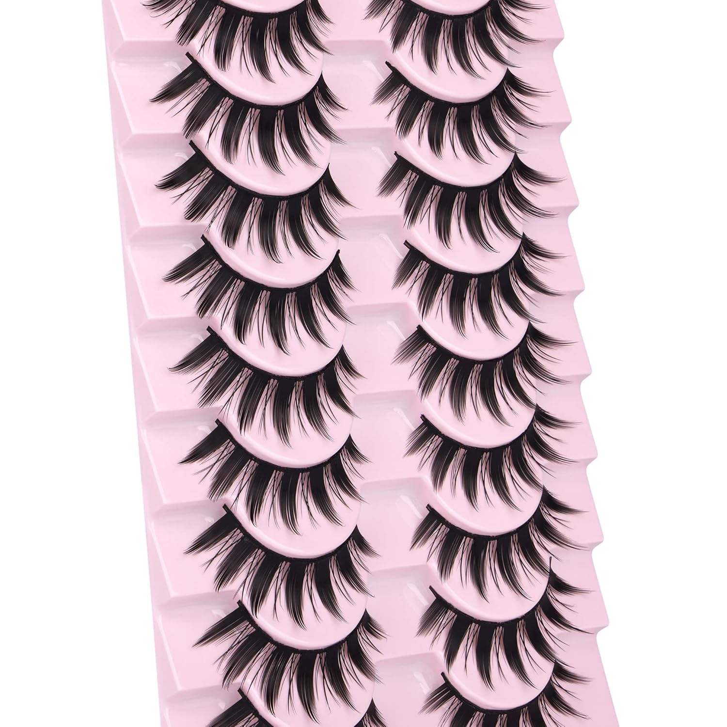 Customers find these false eyelashes look cute and consider them good value for money. However, the quality receives mixed feedback, with some describing them as the best manga strip lashes while others find them low quality. Comfort is also mixed, with some finding them very comfortable while others report they can be itchy and cause allergic reactions. The thickness is criticized for being too thick, and the material feels like plastic. Durability and stickiness get mixed reviews, with some saying they last a long time while others find them fragile.