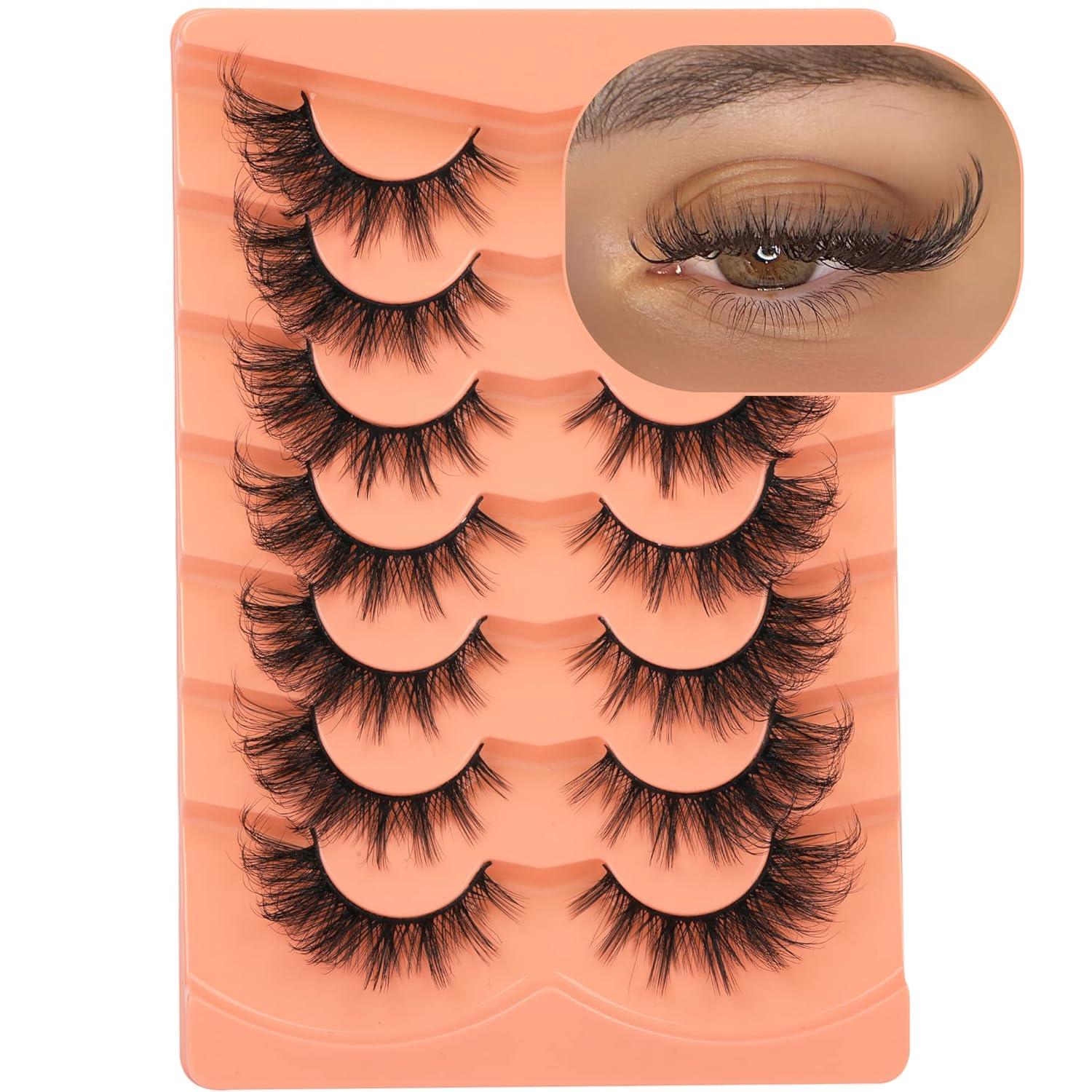【Premium false eyelashes pack】ALICROWN 7 pairs of fake eyelashes are made of good quality synthetic fiber, strong and durable, each pair of false eyelashes can be reused up to 10 times. 100% vegan.