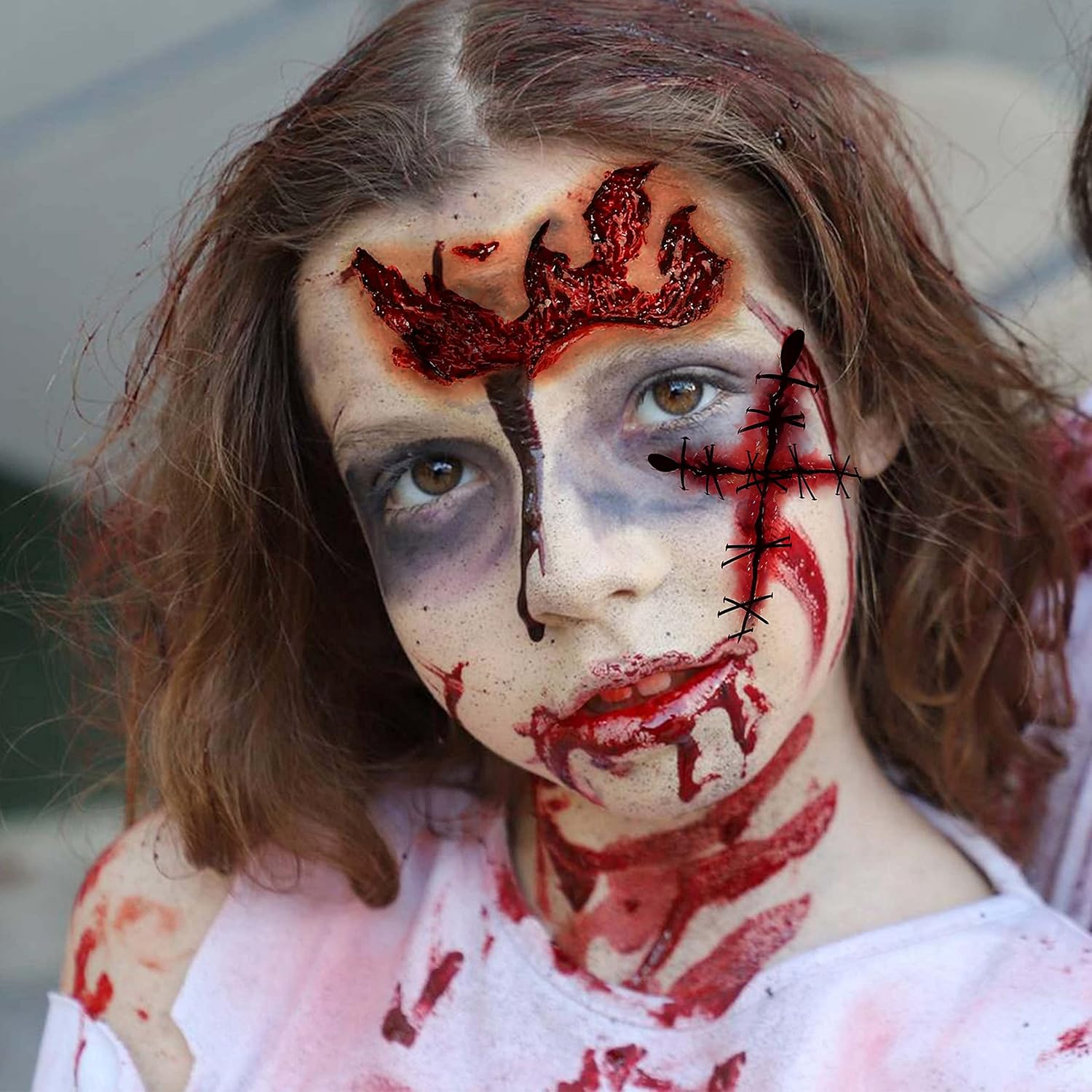 🐤【Variety Exquisite Fake Wound Temporary Tattoo Stickers】8 Sheets 8.5×10.2CM 3.3″x4″ Large Scar Tattoos For Adults DIY Customized Creative Fake Cut Stitches Scratches injury Chucky Makeup Kit Realistic Blood Bloody Zombie Tattoos Design.