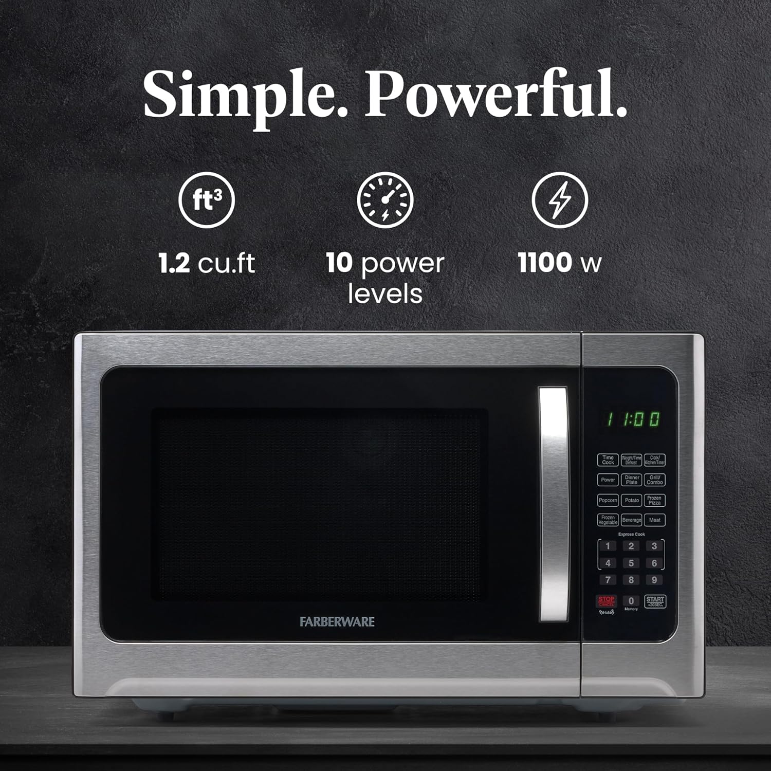PERFECT SIZE: Measuring 1.2 cu ft, this microwave is the ideal small-space solution that offers full-sized cooking in a compact space. It features an easy-to-clean interior and exterior and is perfect for the home or office.