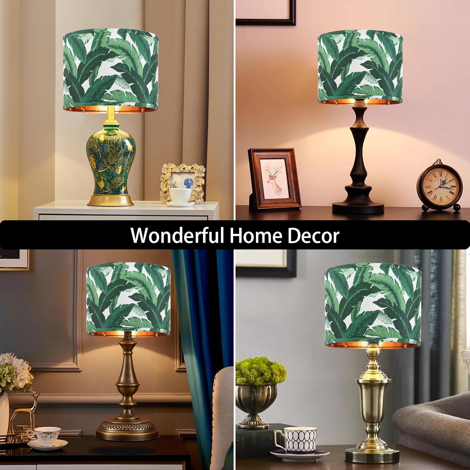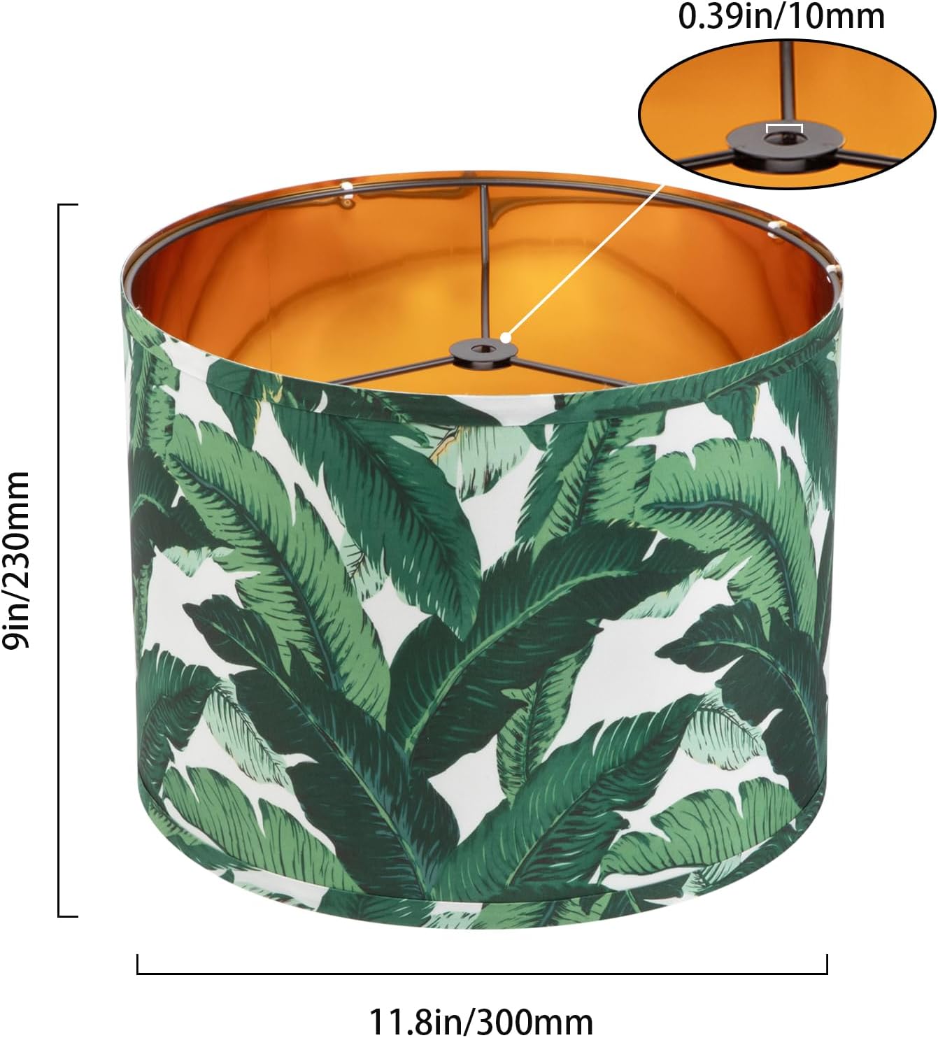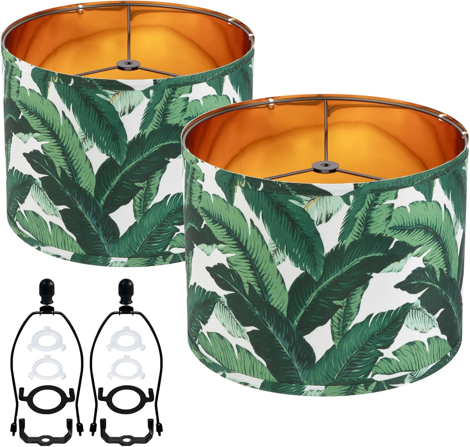Farmhouse Lamp Shade Set of 2 – Vintage Barrel Drum Style, 11.8″ Width x 5″ Height, White And Green Tropical Leaf Pattern Design for Table/Floor/Wall Lamps, Easy Assembly with Harp Holder