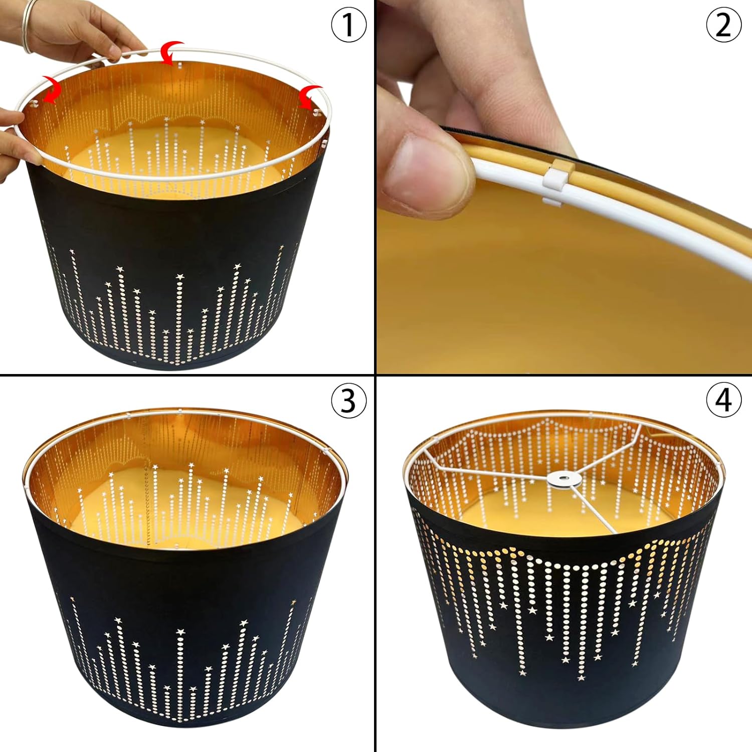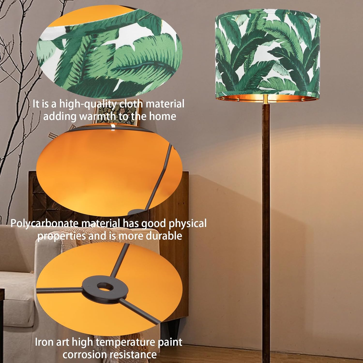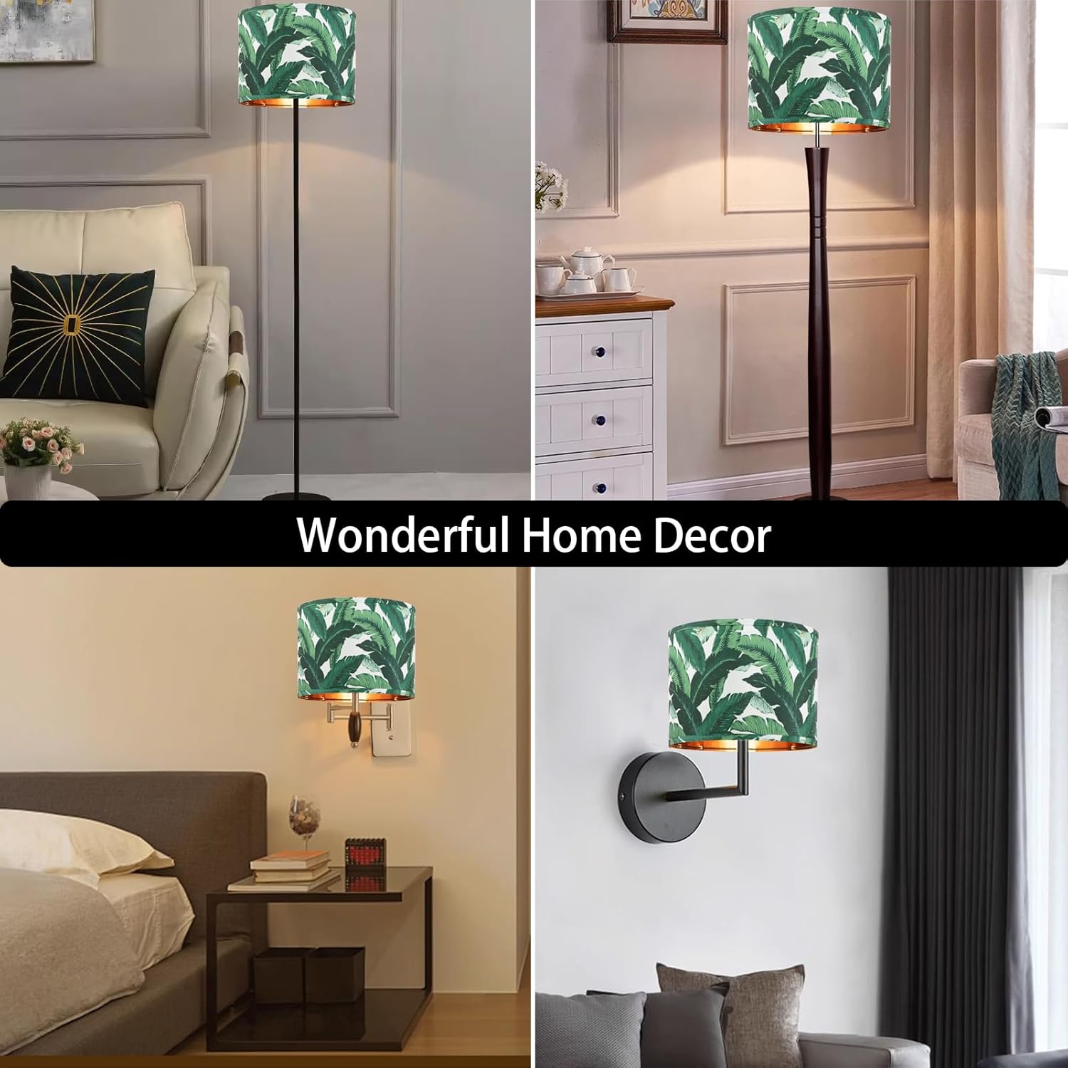 Farmhouse Lamp Shade Set of 2 – Vintage Barrel Drum Style, 11.8″ Width x 5″ Height, White And Green Tropical Leaf Pattern Design for Table/Floor/Wall Lamps, Easy Assembly with Harp Holder