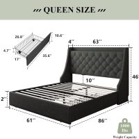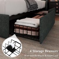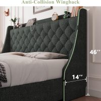 Feonase Queen Bed Frame with 4 Storage Drawers, Upholstered Storage Bed with Charging Station, Tufted Wingback Headboard, No Box Spring Needed, Dark Grey