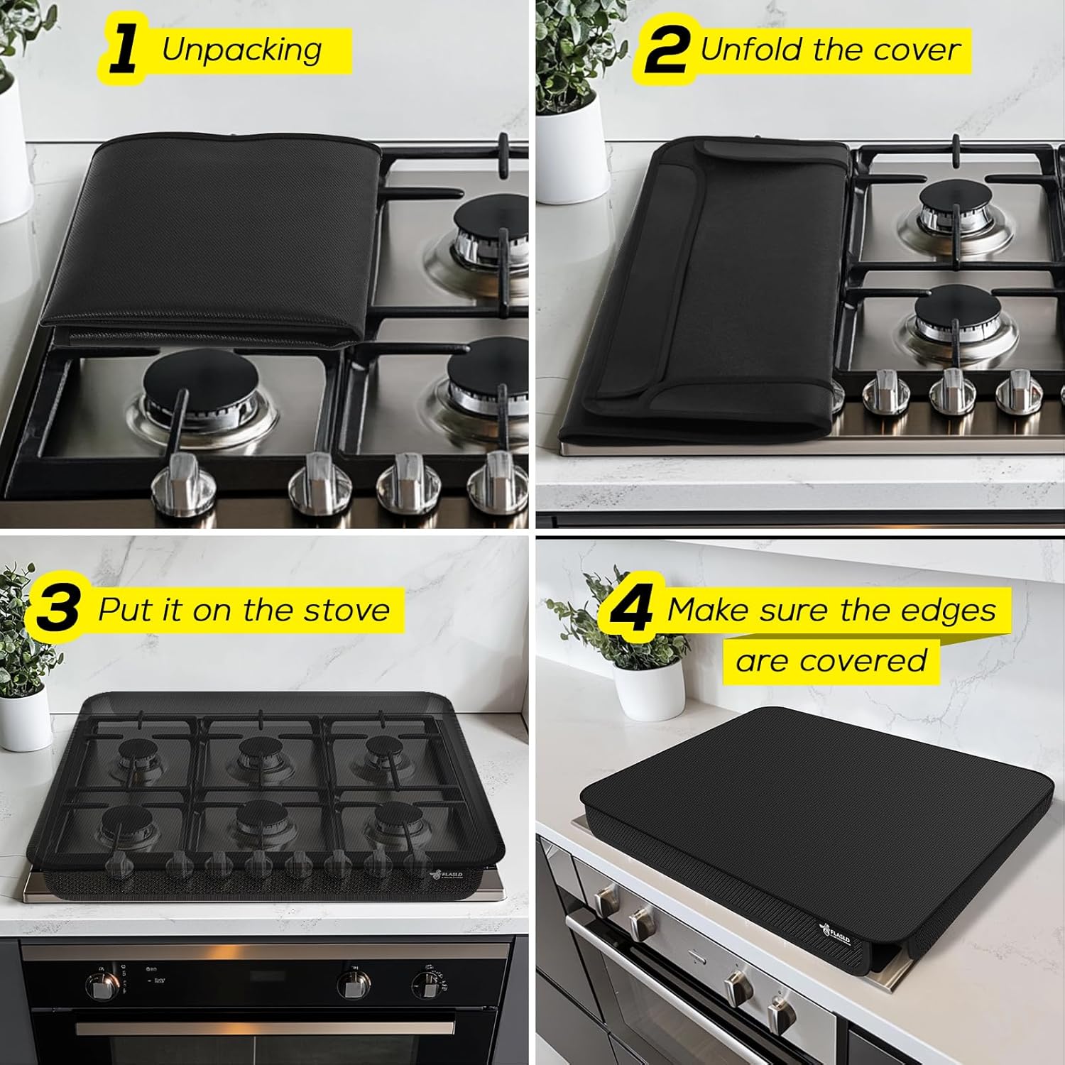 【FIREPROOF AND HEAT RESISTANT】FLASLD stove gas cover can resistant heat up to 550℉, It can placed on gas stove that is turned off but still hot.Fireproof does not mean that it can withstand all the heat of the gas stove. We recommend waiting for 3 minutes after using the stove before putting on the cover, Do not use while the stove is working.