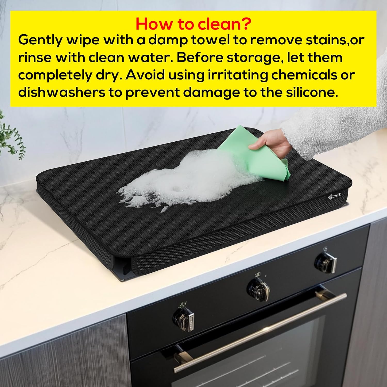 【EASY TO USE AND CLEAN】Rinsing stovetop cover with warm, soapy water, gently scrubbing with a soft sponge to remove residue, and then thoroughly rinsing with clean water. Alternatively, they can be washed in the dishwasher on a gentle cycle. Allow them to air dry completely before storage. Avoid harsh chemicals or abrasive scrubbers to prevent damage to the silicone.