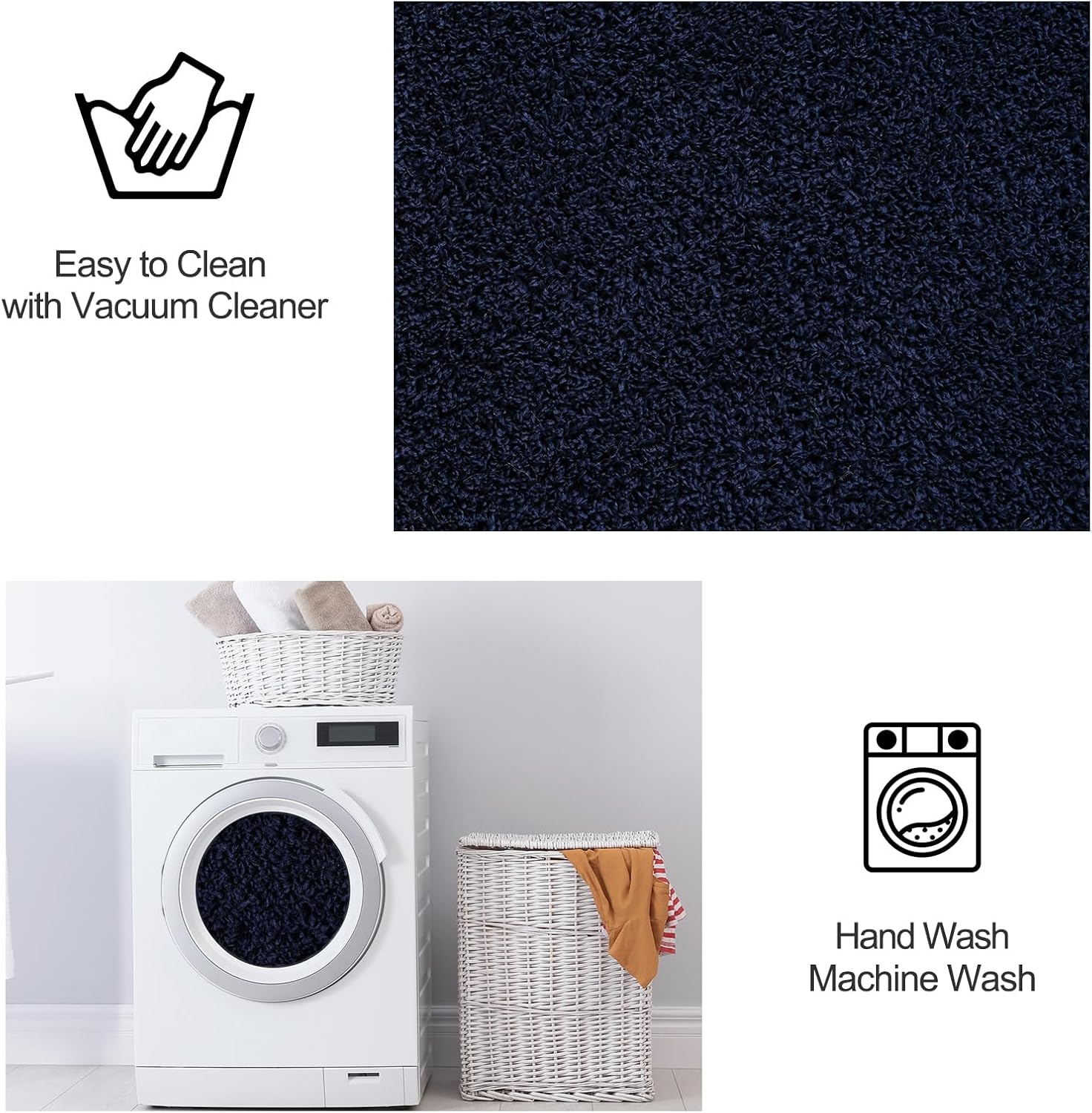 Area Rug Notice: Due to easy transportation and dustproof requirements, our furry rugs are vacuum packed and the folds of the navy blue rugs can be automatically recovered within 1-2 days after opening. We recommend you to do a daily cleaned for the throw rug with a vacuum, and you can also wipe the stain with a damp cloth. Our washable rugs support hand or machine cleaning