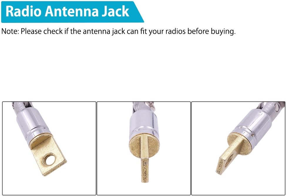 Max full length of antenna: 24 inches; Unstretched length: 8.5 inches. This radio antenna can fit most portable radio receiver.(Note: Not fit all radios, please check if the radio antenna can fit your radio antenna jack. Refer to the 2nd product image.)