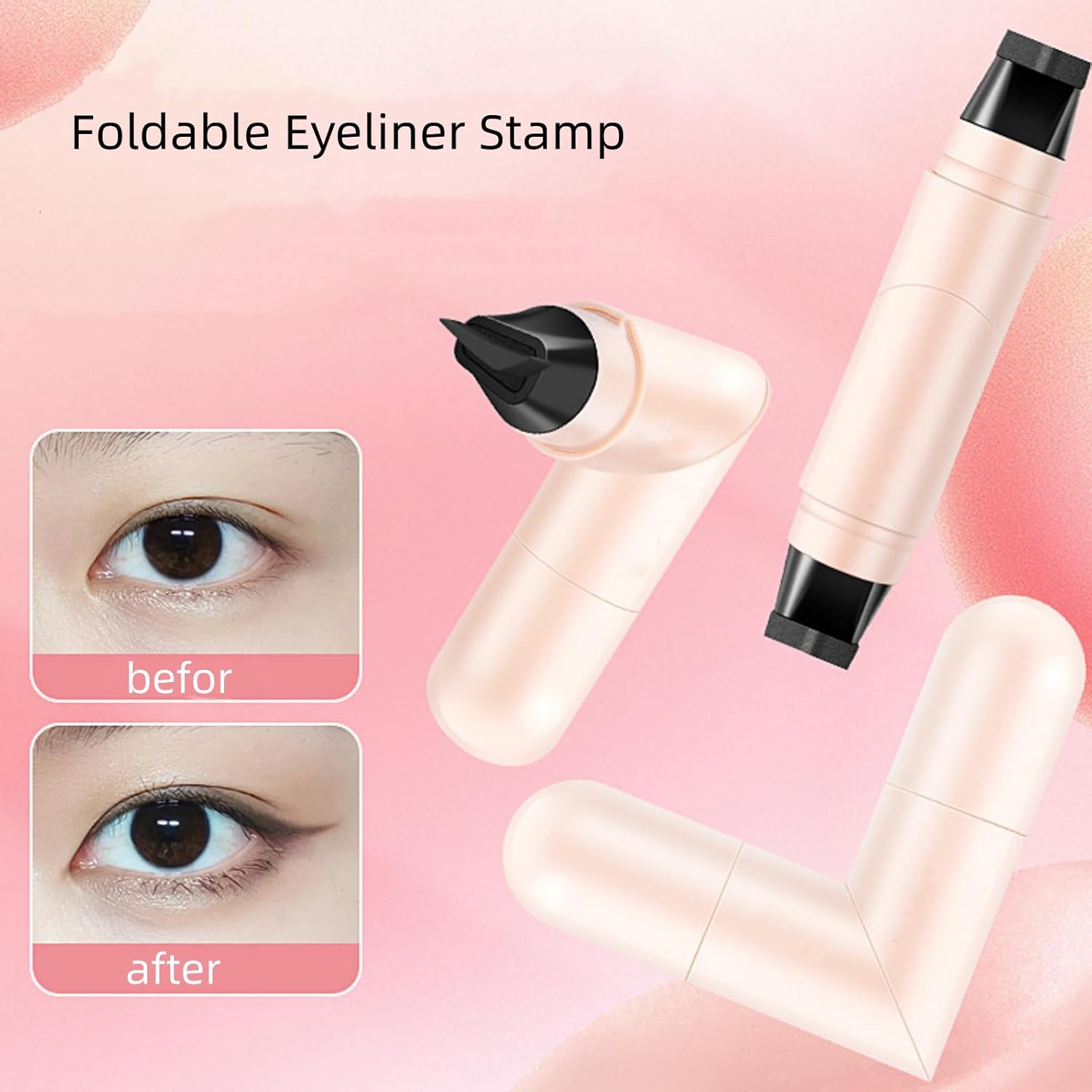 3-in-1 Silicone Tool:Foldable eyeliner wing stamp, adapts to all eye shapes, doubles as brow stamp.