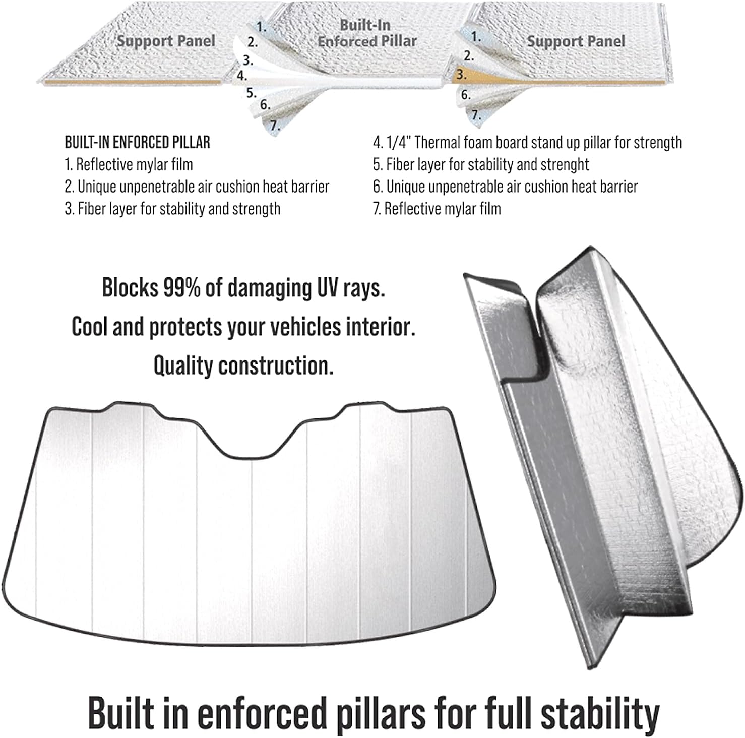 Elevate your driving experience with the best in sun protection. Order your Universal Fit (Not custom fit) Sunshade today. Note, Please measure your windshield size before you buy this product.