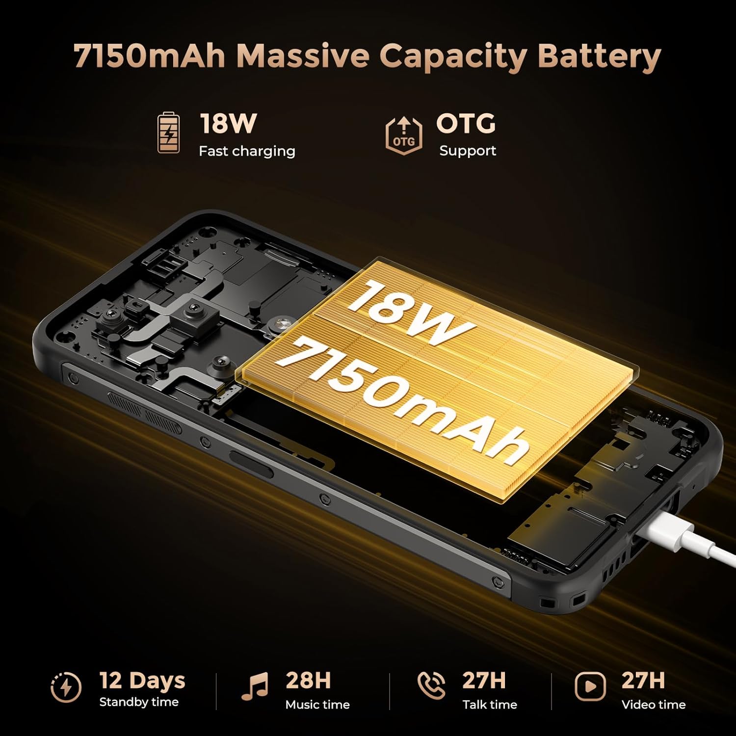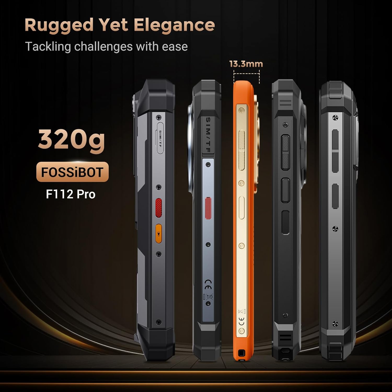 FOSSIBOT F112 Pro 5G Rugged Smartphone Unlocked, 256GB+24GB RAM (Expandable to 1TB), Android 14, 7150mAh Battery, 6.88″ FHD+ Display, 50MP+16MP Camera, IP68/IP69K Military Grade, NFC, Dual SIM