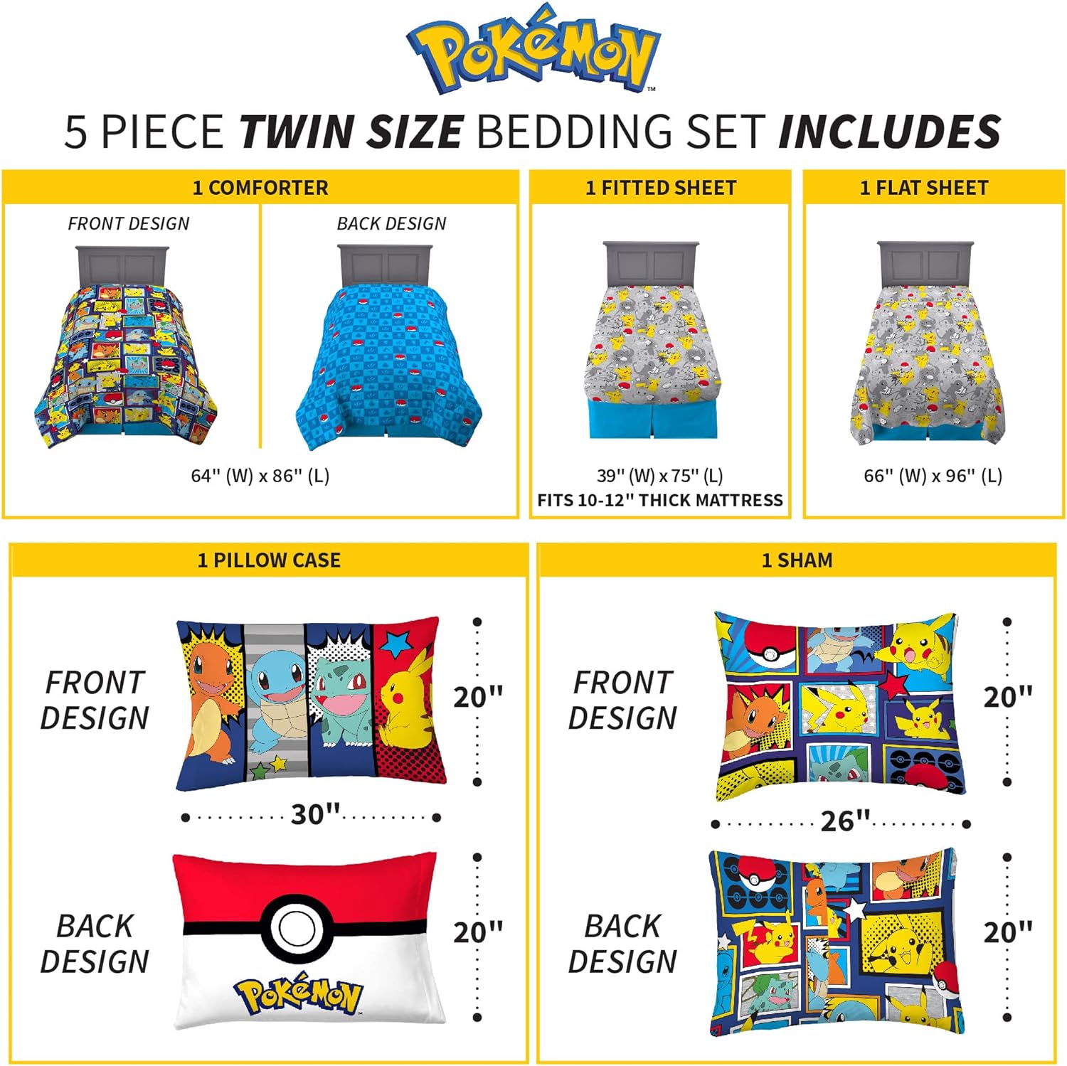 Franco Kids Bedding Super Soft Comforter and Sheet Set with Sham, 5 Piece Twin Size, Pokemon