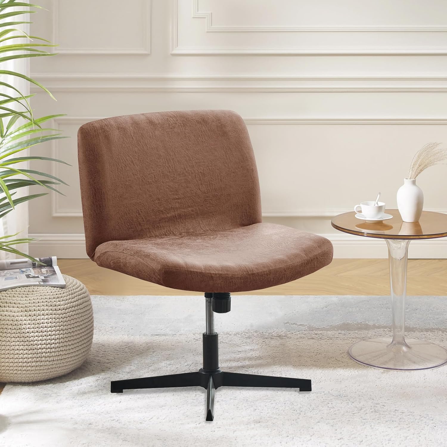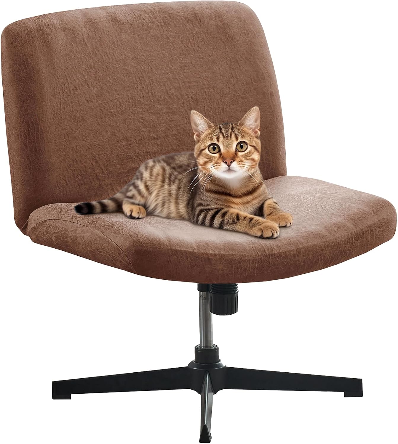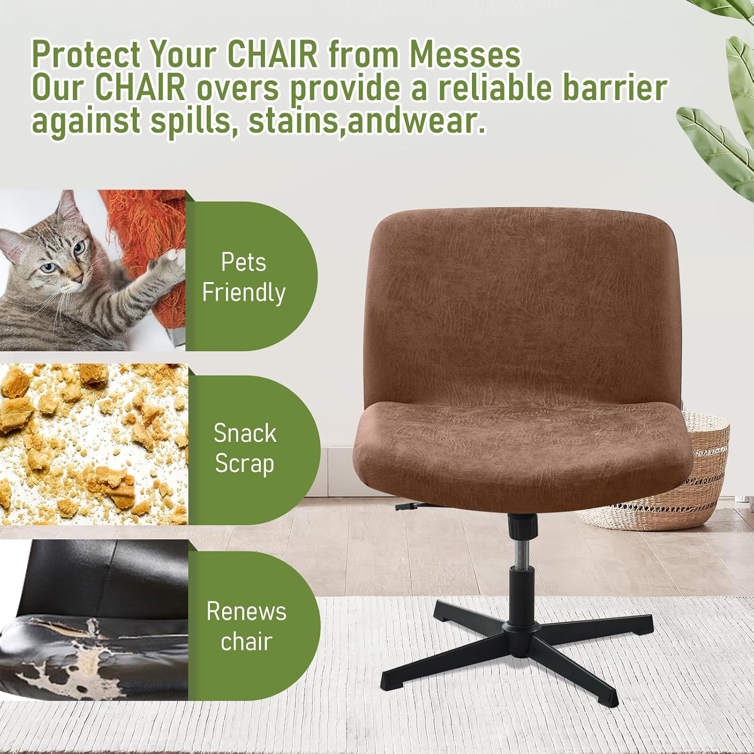 FUANGUI Criss Cross Chair Cover, Faux Leather Looking Stretch Mid Back Wide Armless Accent Chair Slipcover, Exquisite Vanity Chair Cover for Dorm Home Desk Office Chair – Camel
