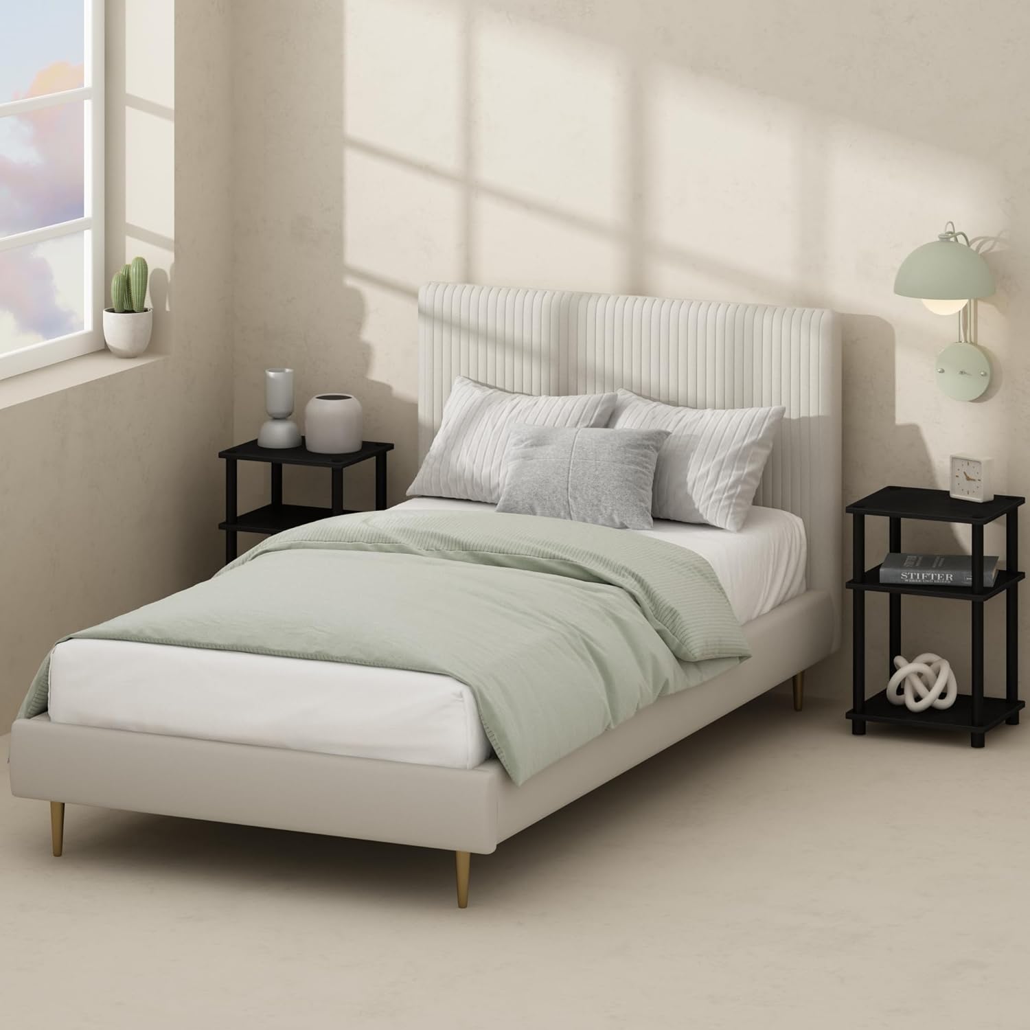 Three shelves provide generous space to store your essentials, from alarm clocks to novels. Each shelf holds up to 10 lbs.