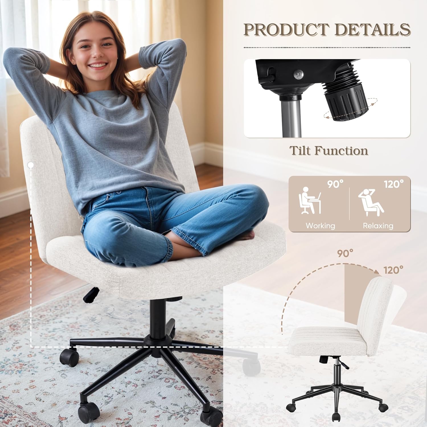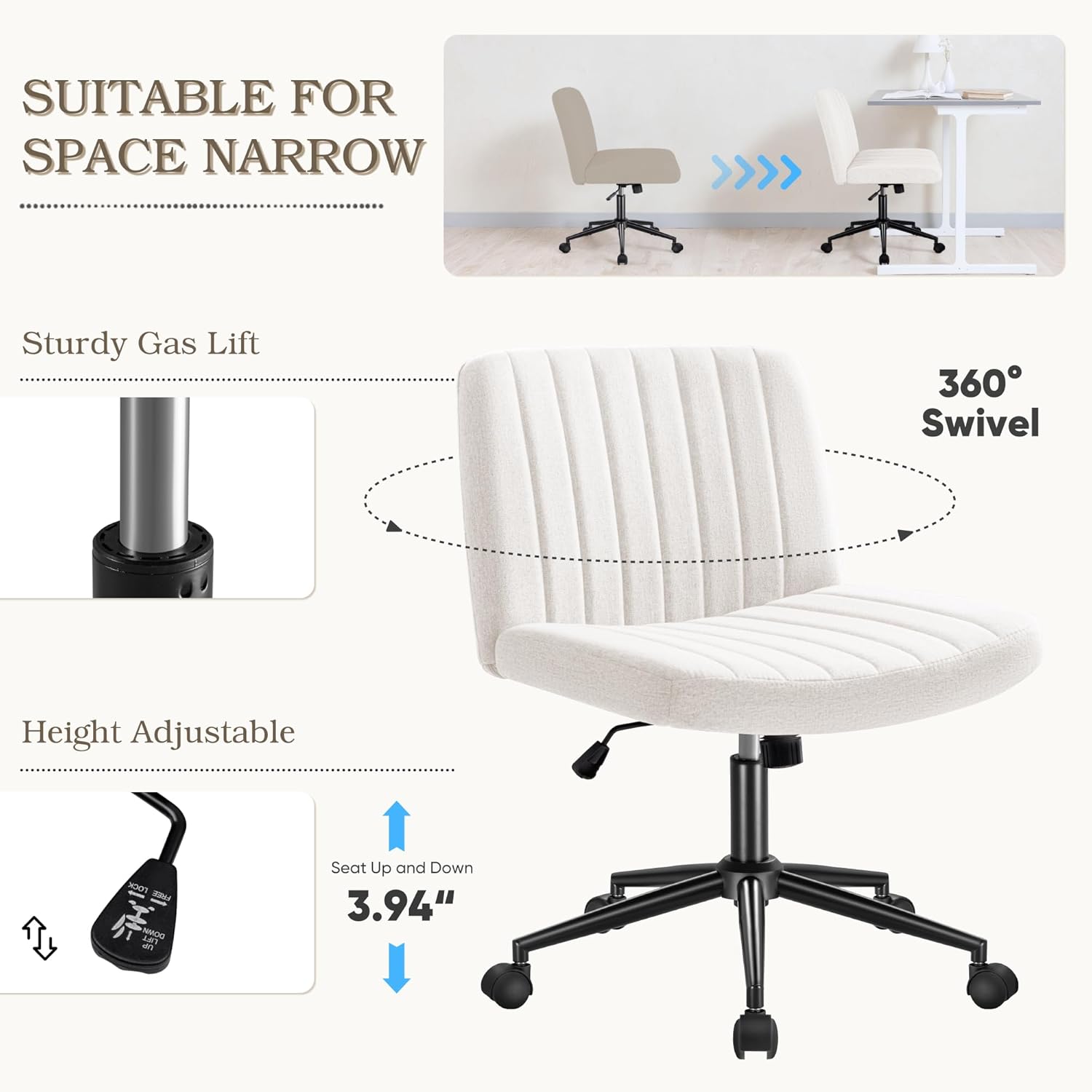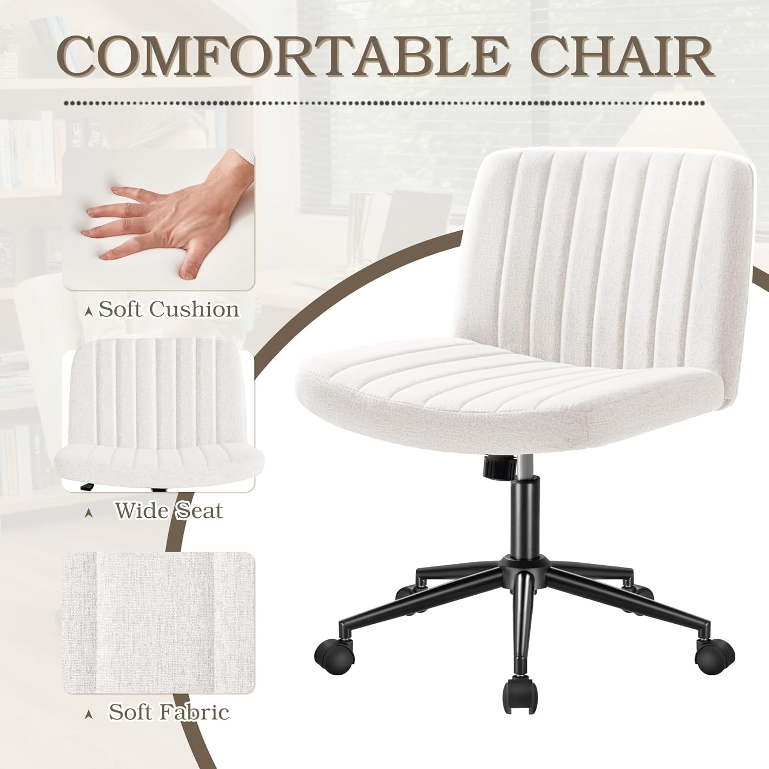 Furmax Cross Legged Office Chair with Wheels, Armless Desk Wide Chair, Adjustable Swivel Padded Fabric Vanity Computer Task Chair (Beige)