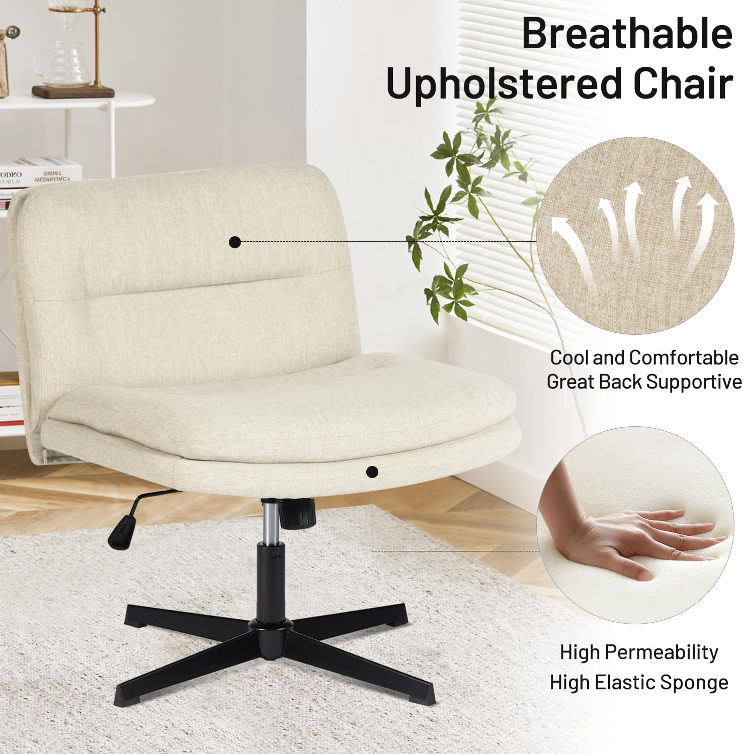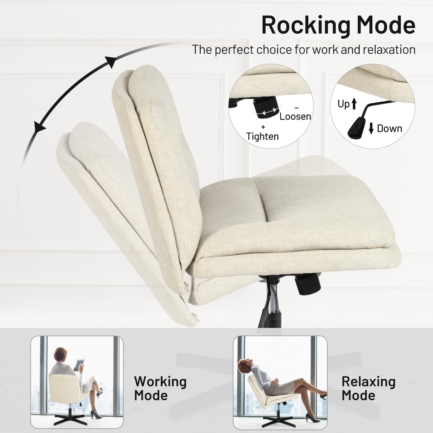 Adjustable Height with Swivel Base: Easily adjust the seat height with a pneumatic lever and enjoy 360° swivel mobility for multitasking comfort in any room.